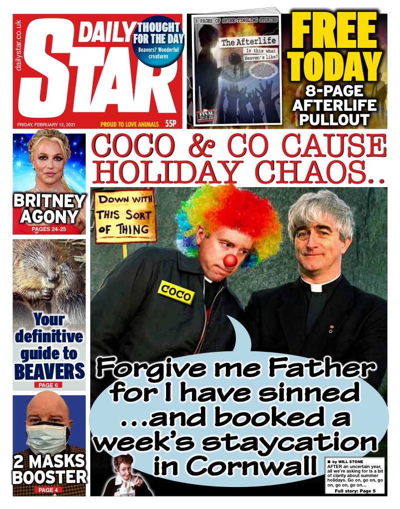 The Daily Star takes aim at Health Secretary Matt Hancock as it satirises the government’s travails over holidays.
