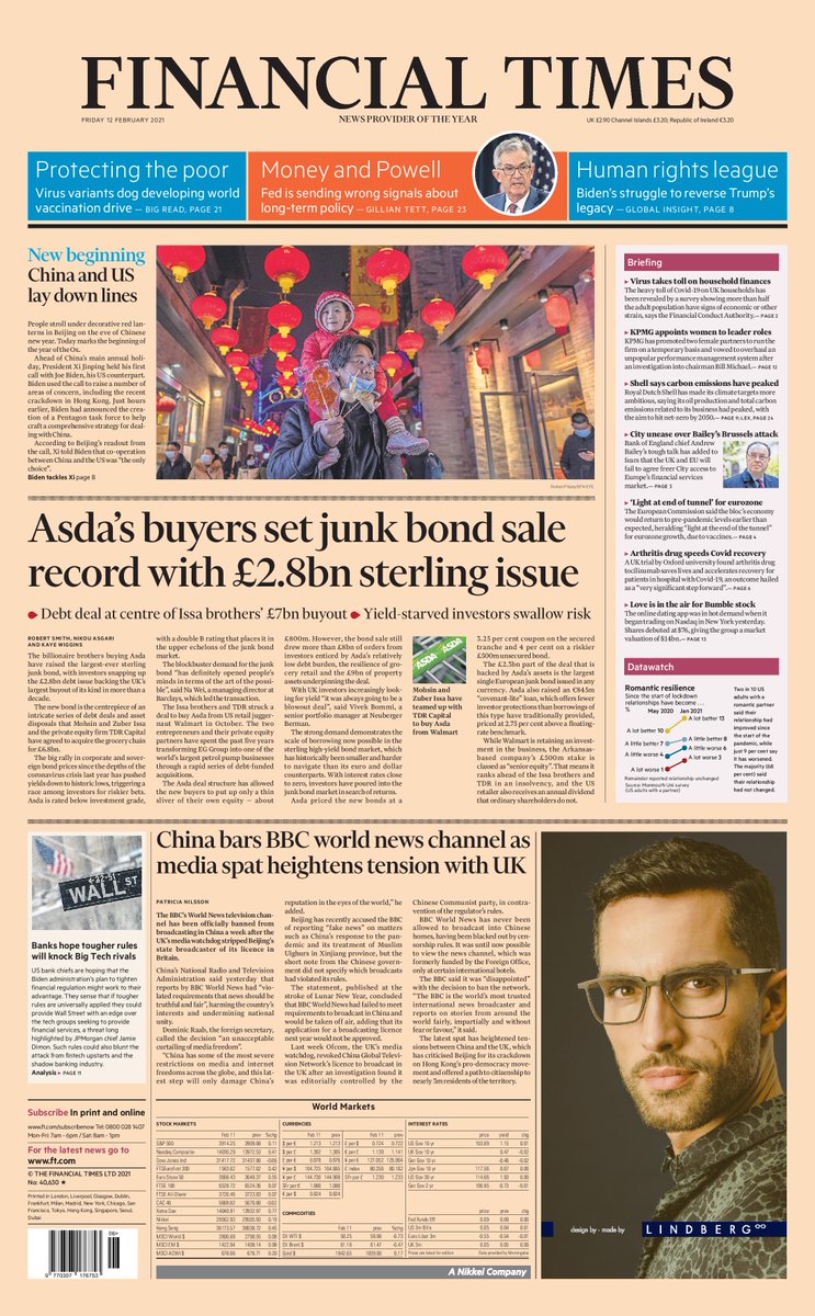 The Financial Times leads on developments in the proposed sale of supermarket chain Asda.