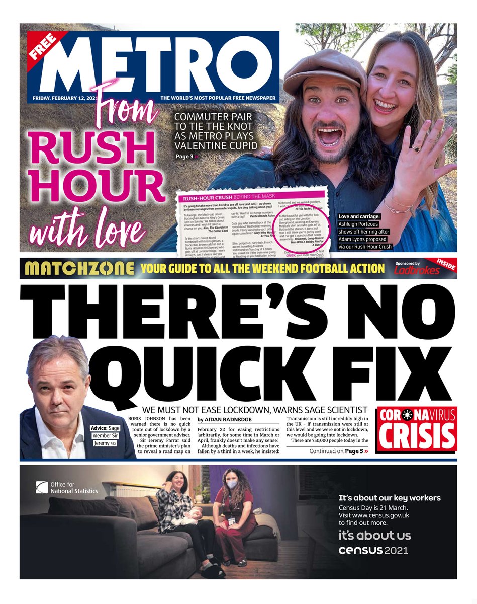 Boris Johnson must be careful not to take the UK out of lockdown too quickly, according to a leading scientist – that’s in the Metro.