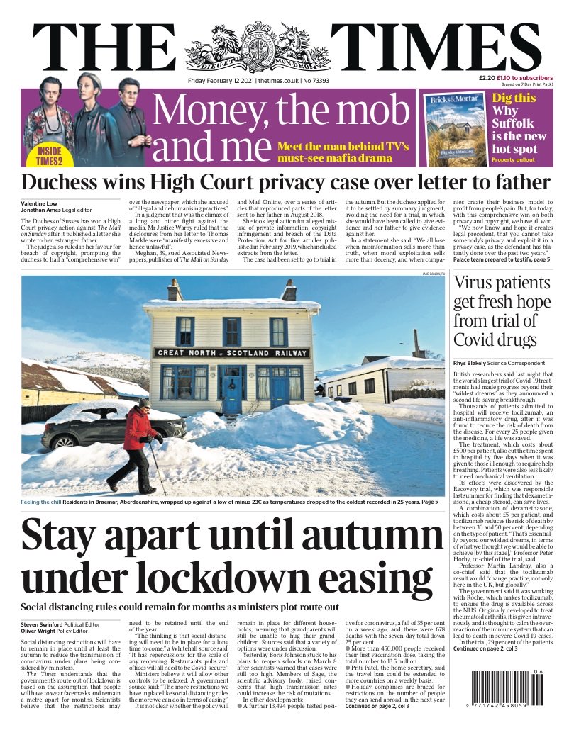 Social distancing may have to stay in place until autumn under plans being considered by ministers – that’s the lead in The Times.