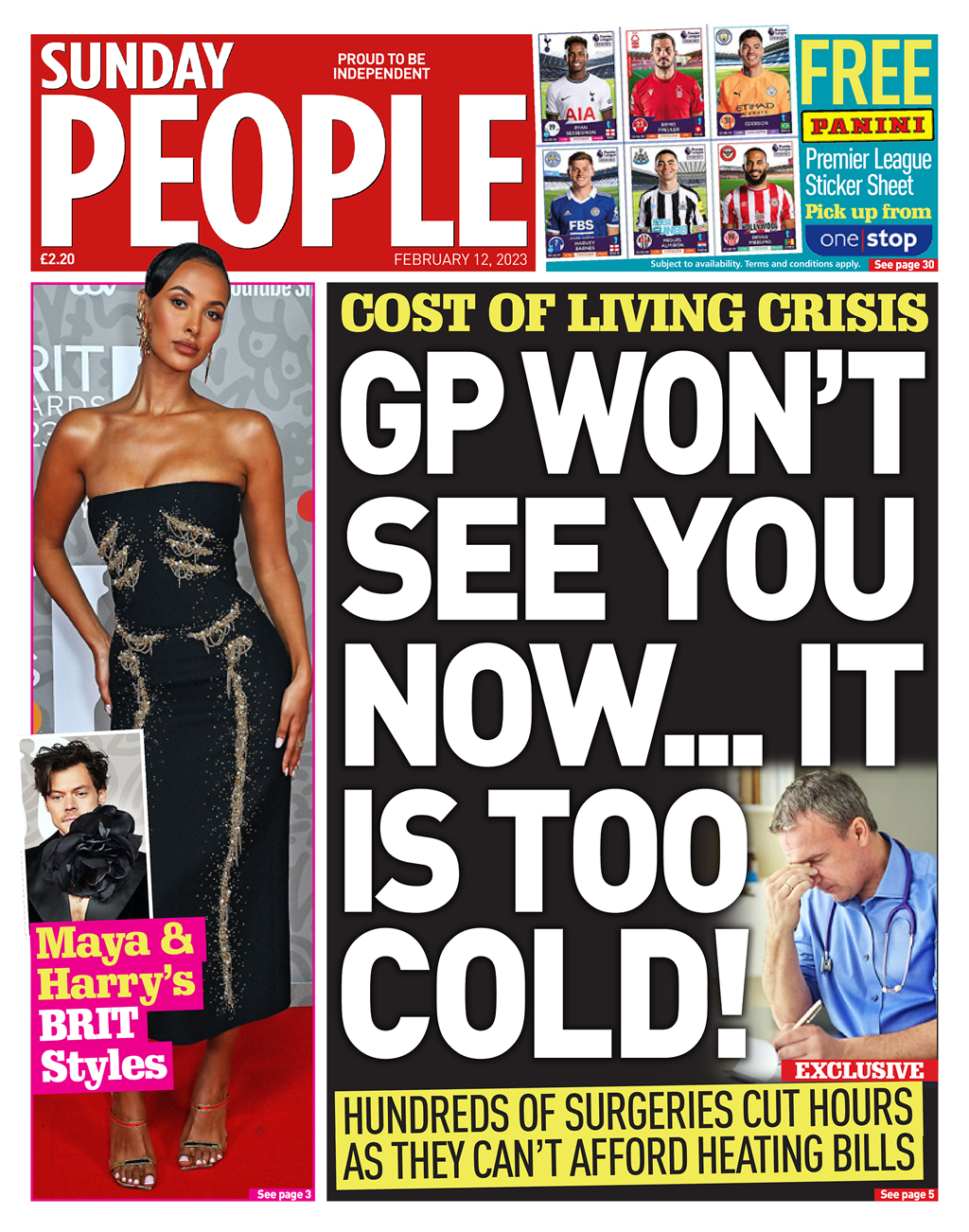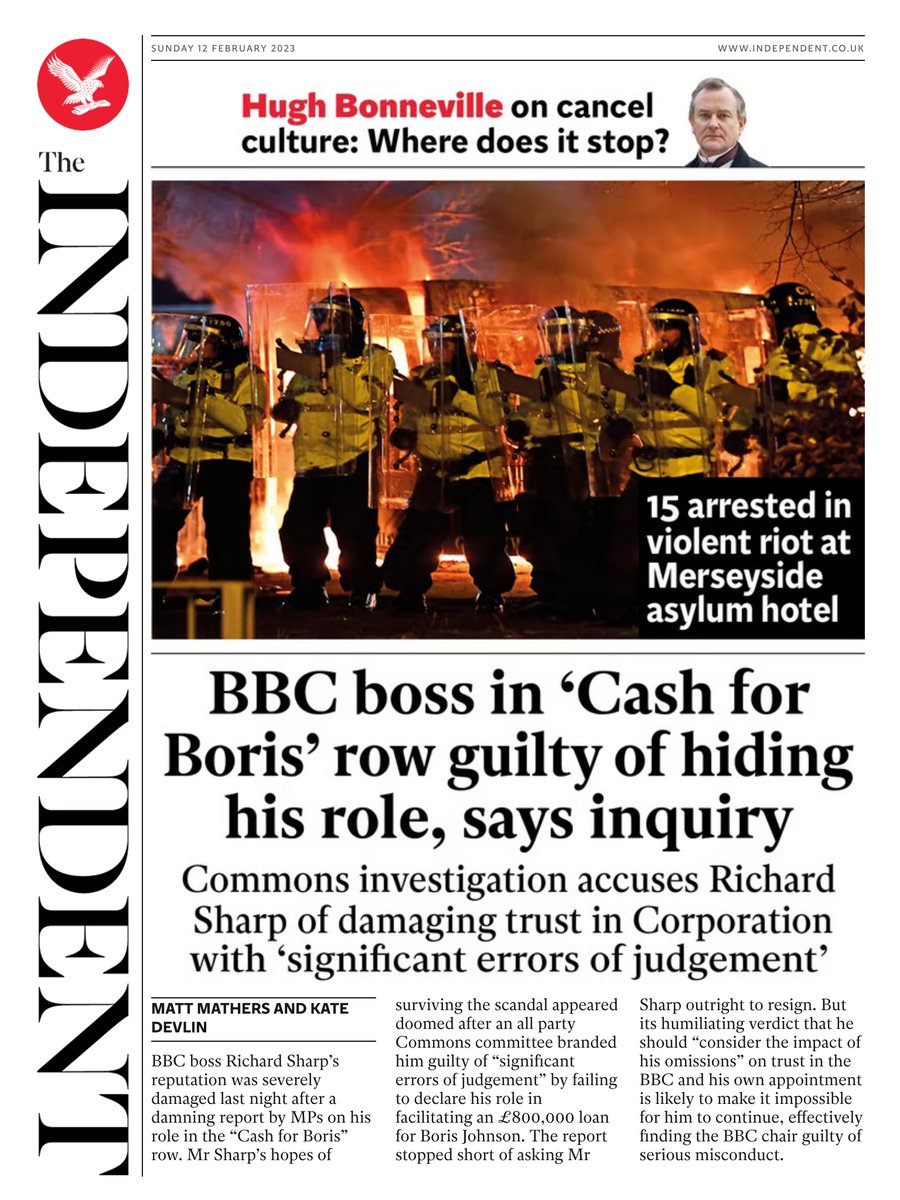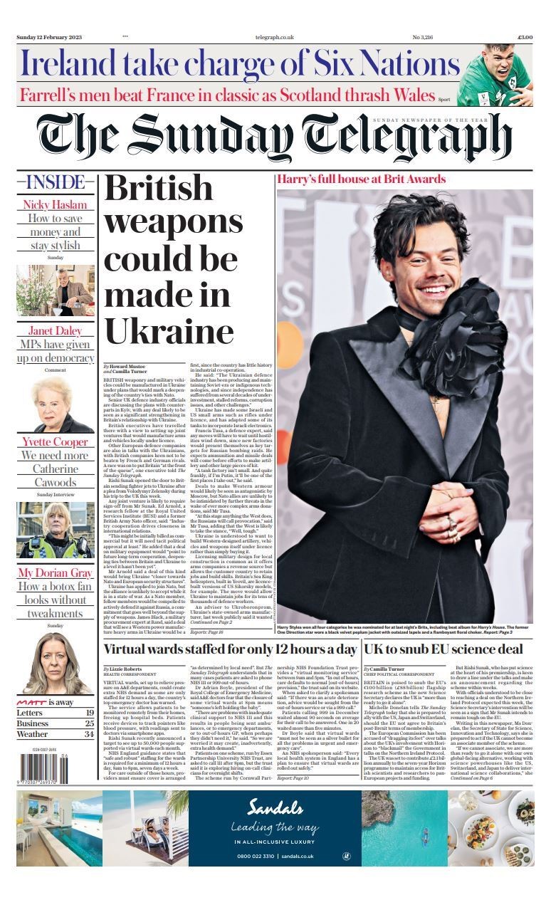 Sunday Telegraph Front Page 12th of February 2023