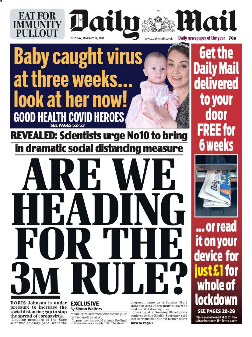 The Daily Mail reports that members of the government’s SAGE committee want the two-metre social distancing rule extended to stem the spread of the new variant of COVID-19.