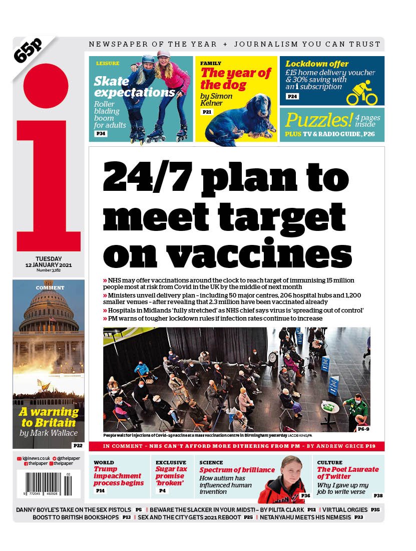 The i leads on reports that coronavirus vaccines may be available around the clock in order to protect as many people as possible amid spiralling hospital admissions.