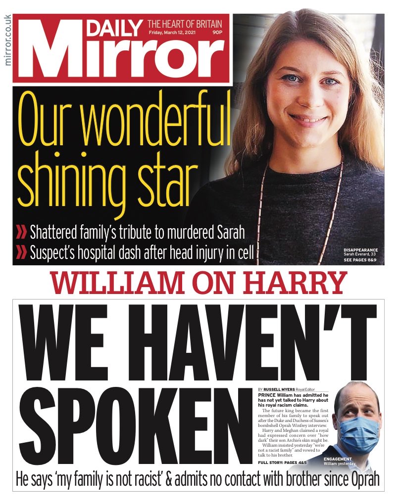 Prince William has revealed he has not yet spoken to his brother following Harry and Meghan’s explosive interview with Oprah Winfrey, according to the Daily Mirror. You can read more on this here.