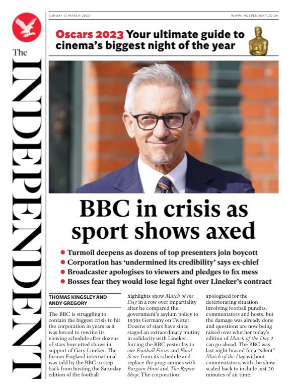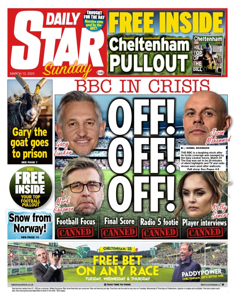 According to the Daily Star Sunday, the BBC is “a laughing stock” after stars refused to stand in solidarity with Gary Lineker.