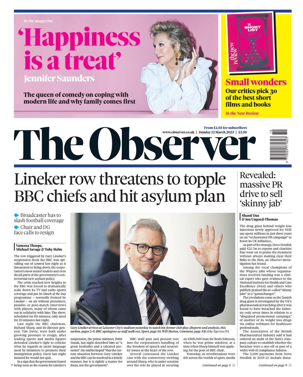 The BBC’s suspension row may topple BBC bosses and derail parts of the government’s new asylum policy, the Observer writes.