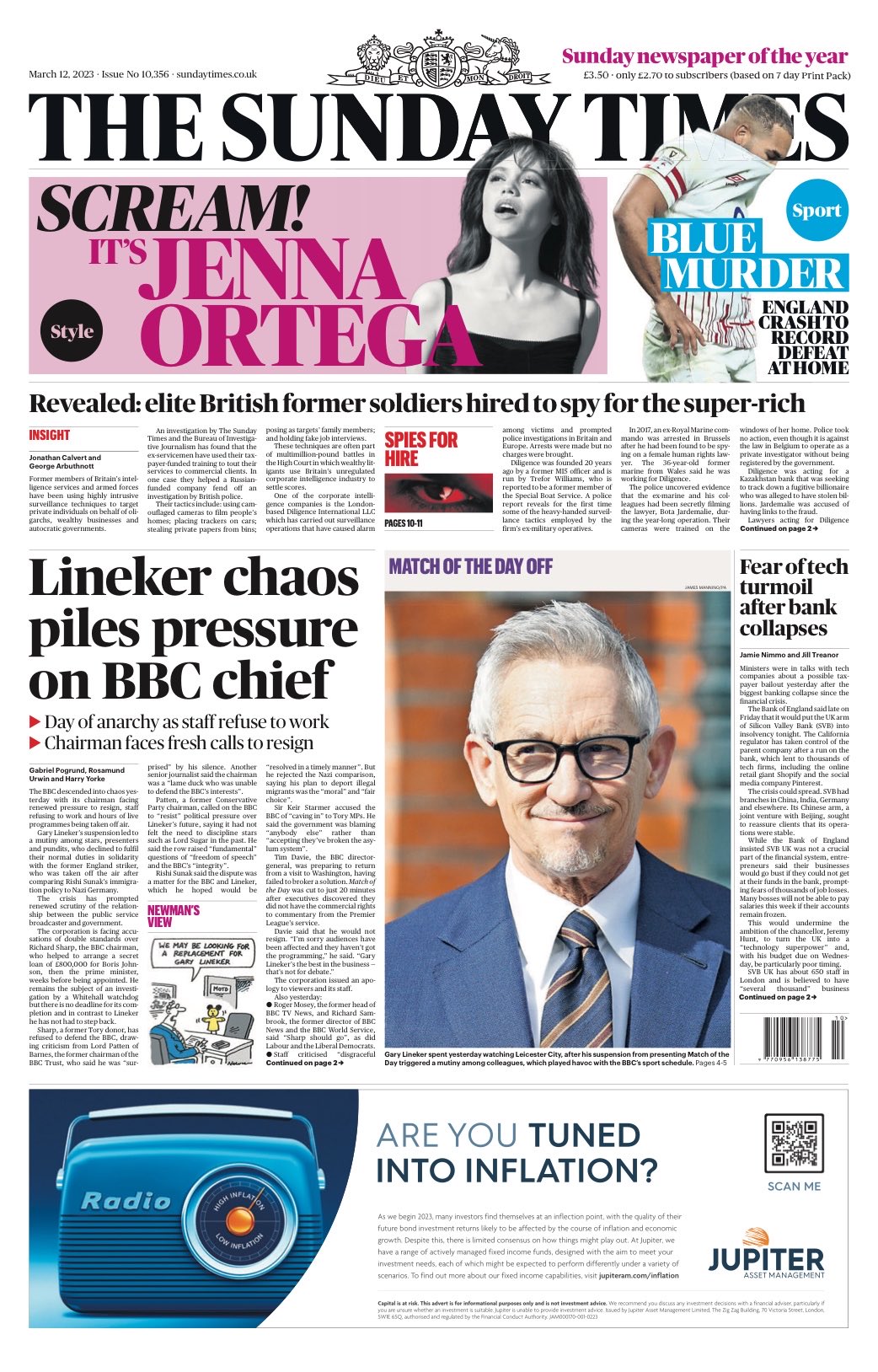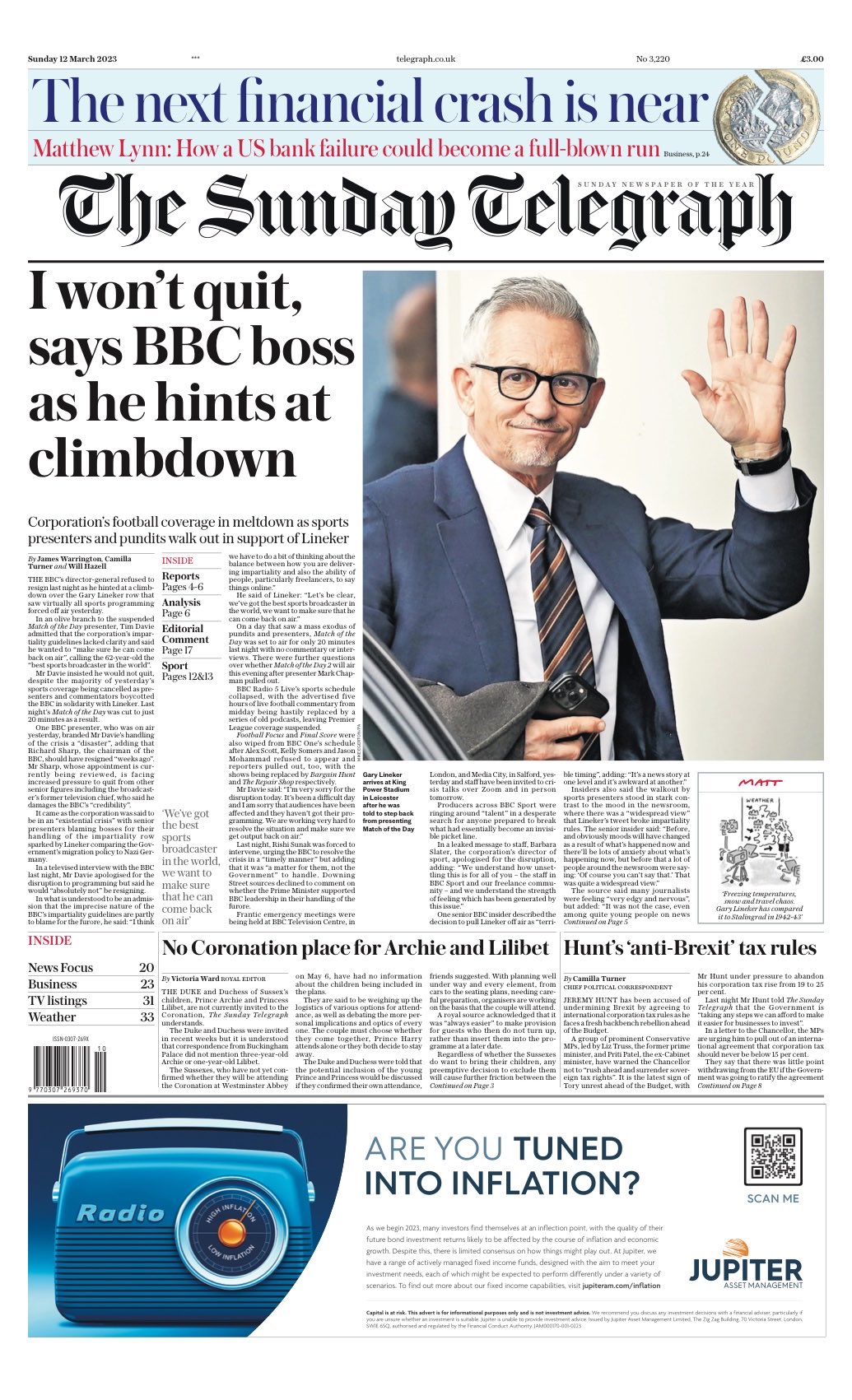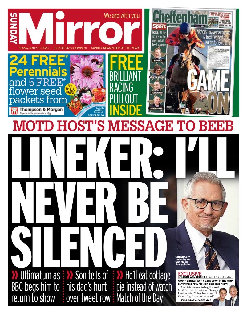 There is renewed pressure on the BBC’s chairman to resign following Lineker’s row, according to the Sunday Times.