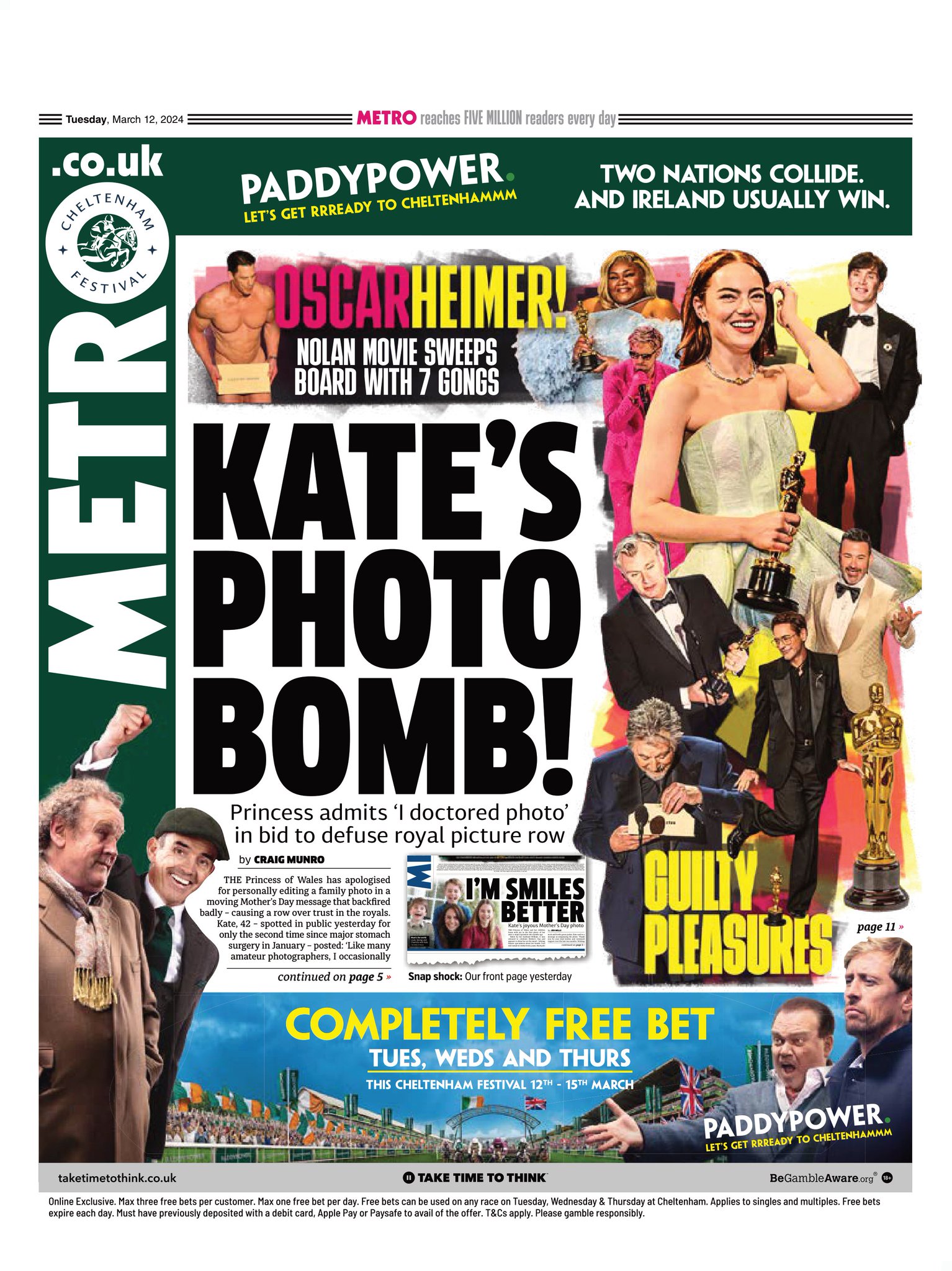 The Metro reveals that the Princess of Wales has confessed to altering a Mother’s Day photo released by Kensington Palace.