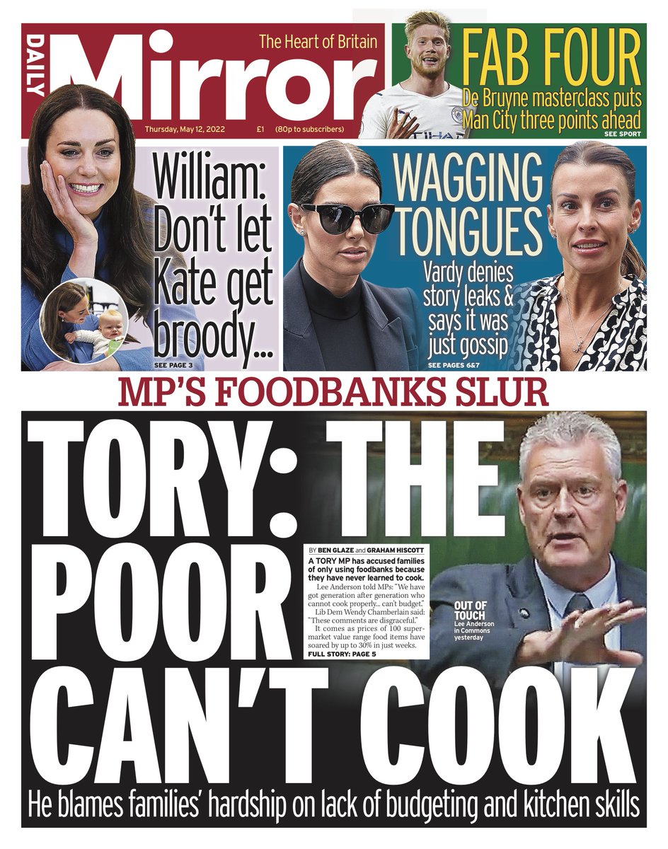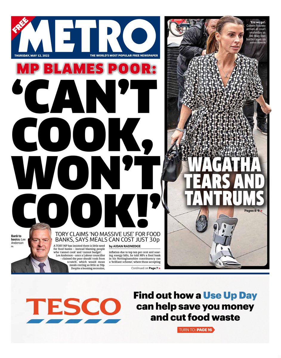The Metro reports that a Tory MP said people don’t need food banks because they either “can’t cook” or “can’t budget”.