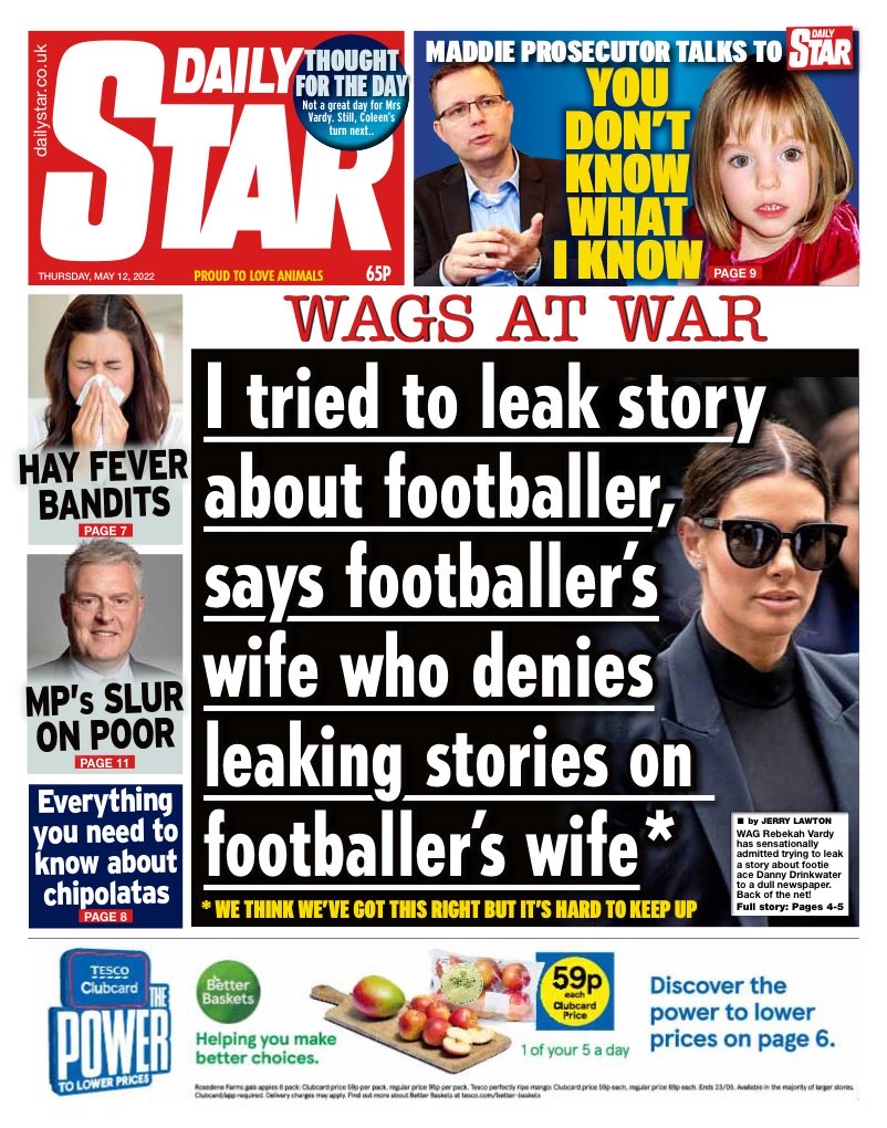 The Daily Star reports that Rebekah Vardy admitted trying to leak a story about former Leicester midfielder Danny Drinkwater on day two of the Wagatha Christie trial.