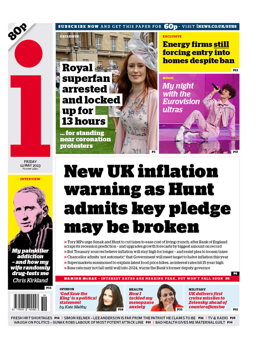 The i reports that Conservative MPs are urging Rishi Sunak and Jeremy Hunt to cut taxes following the Bank of England’s decision to raise interest rates.