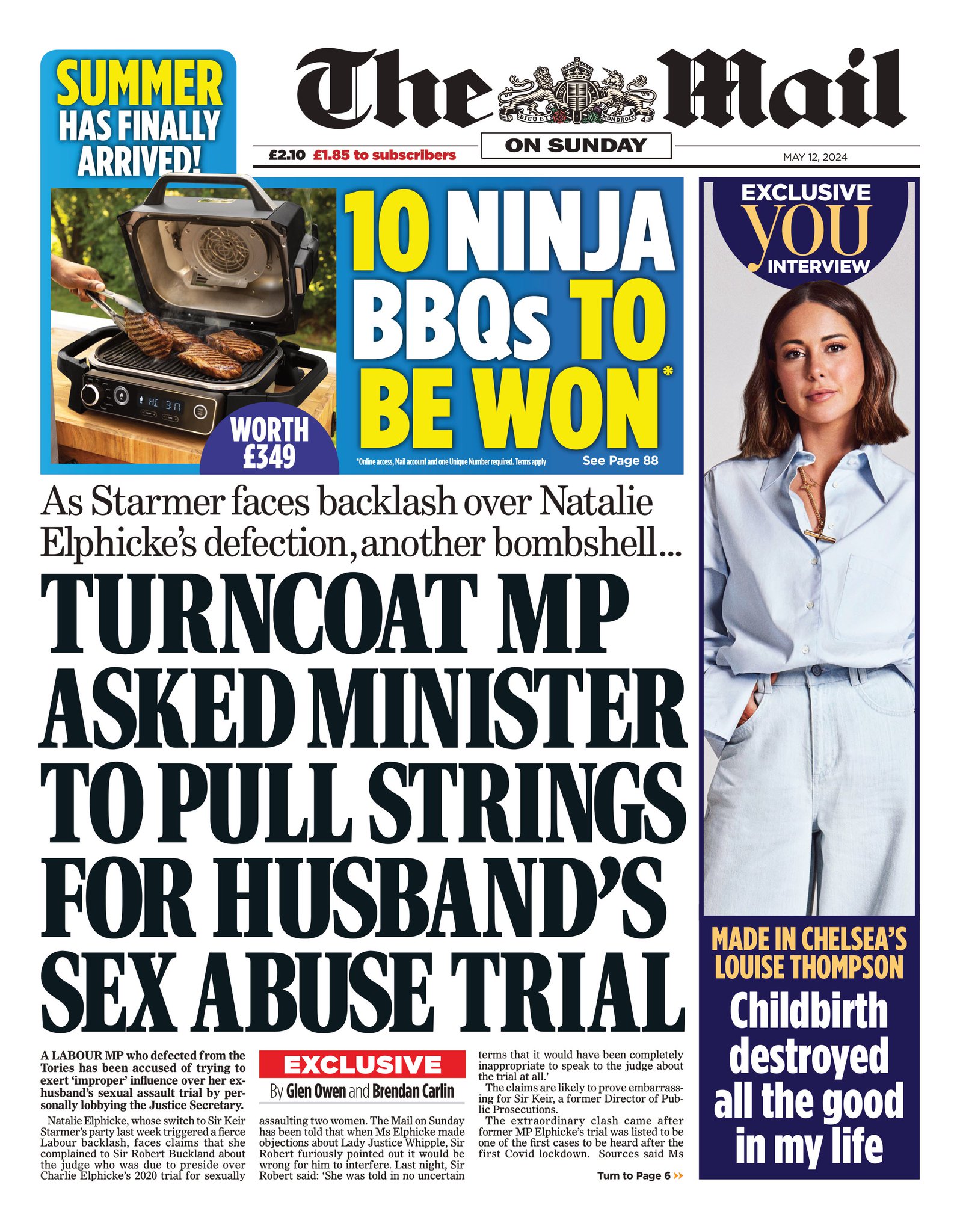 The Mail on Sunday covers allegations against ex-Tory MP Natalie Elphick, now with Labour.
