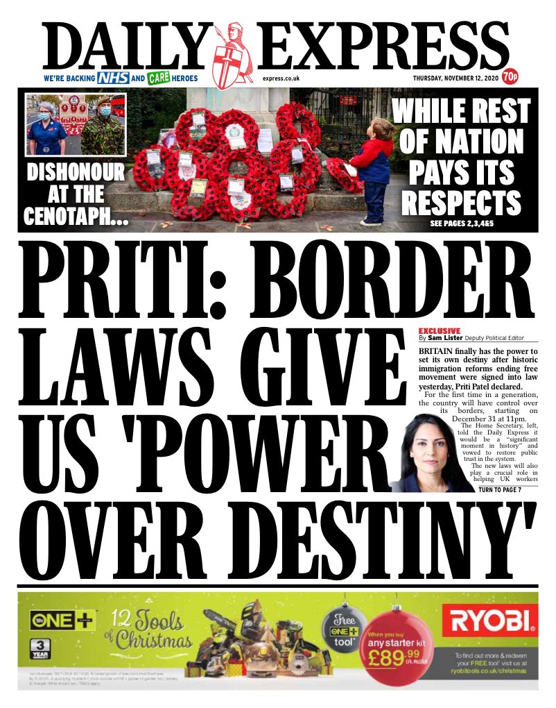 The Daily Express says the end of free movement gives Britain “power to set its own destiny”.