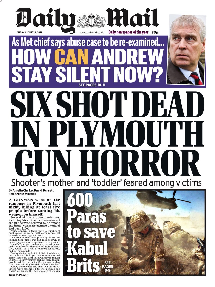 The Daily Mail says a number of people have been left needing treatment after the Plymouth shooting.