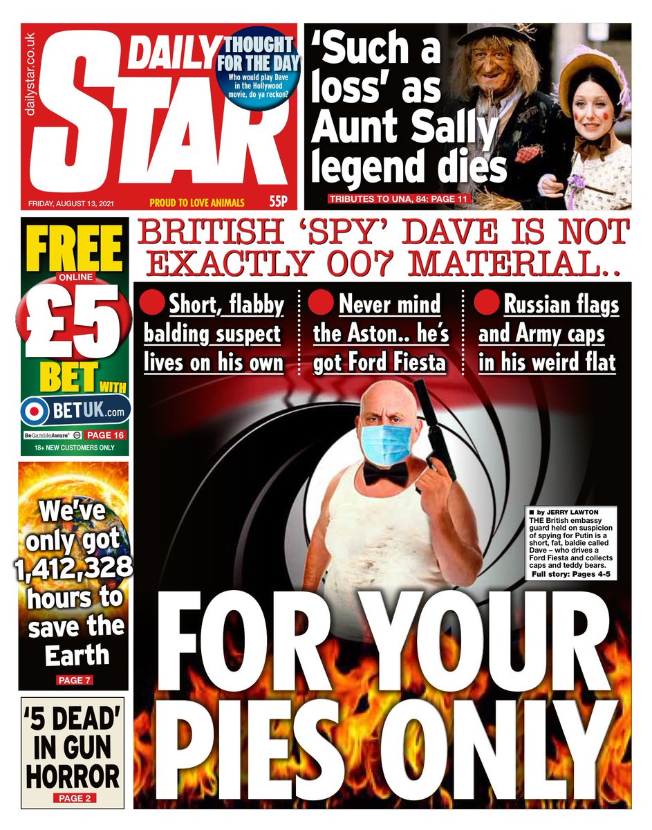 The Daily Star reports the British embassy guard held on suspicion of spying for Putin is a “short, fat, baldie called Dave”.