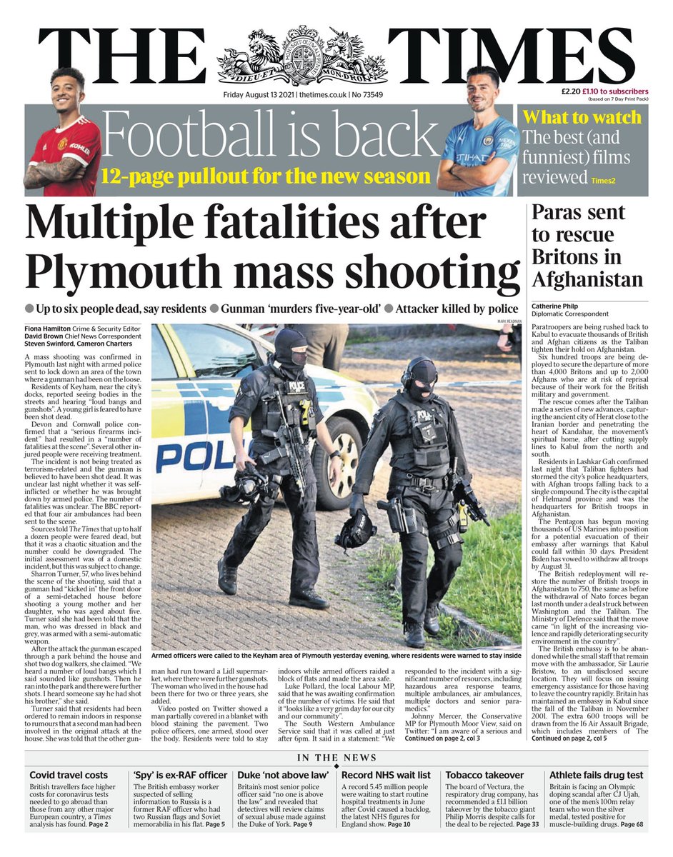 The Times says there have been multiple fatalities following the mass shooting in Keyham – with armed police sent to lock down an area where the gunman had been on the loose.