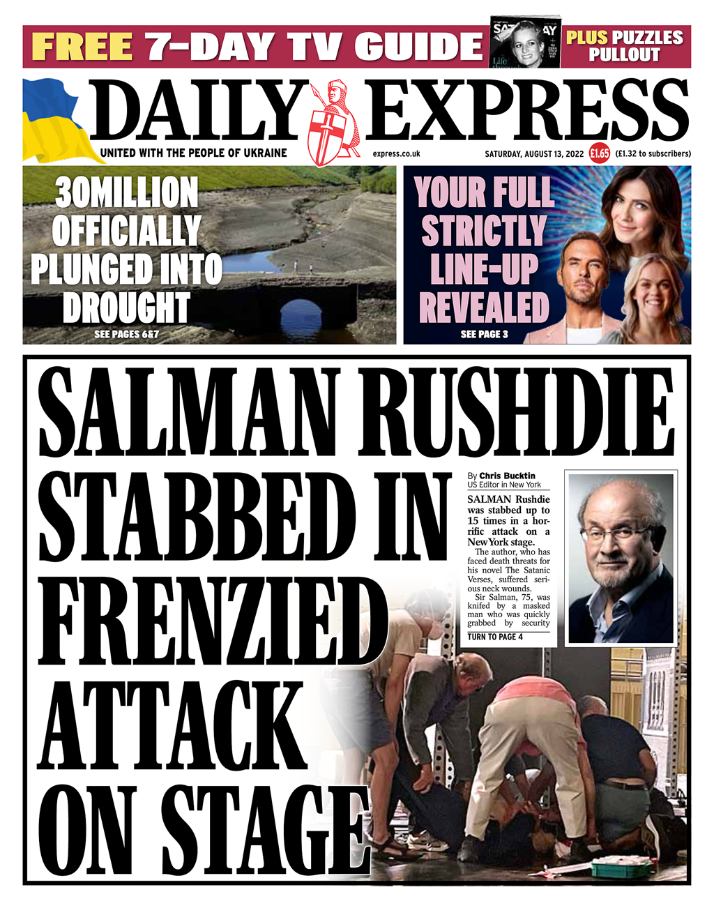In the US, Salman Rushdie was stabbed up to 15 times, according to the Daily Express.