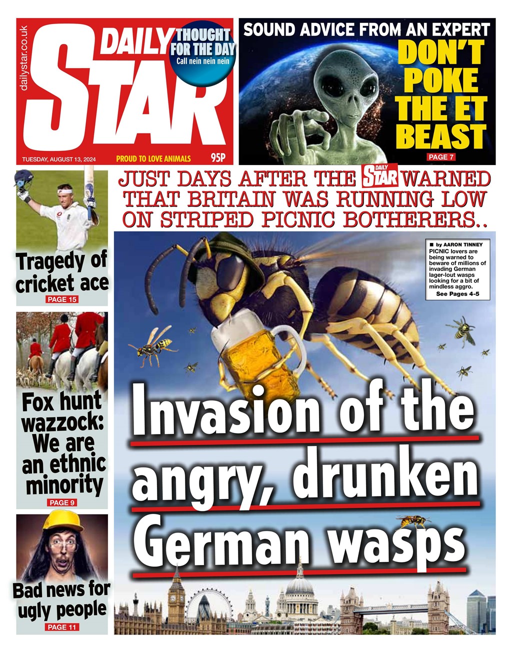 The Daily Star reports that picnic enthusiasts are being cautioned about “millions of invading German wasps seeking trouble.
