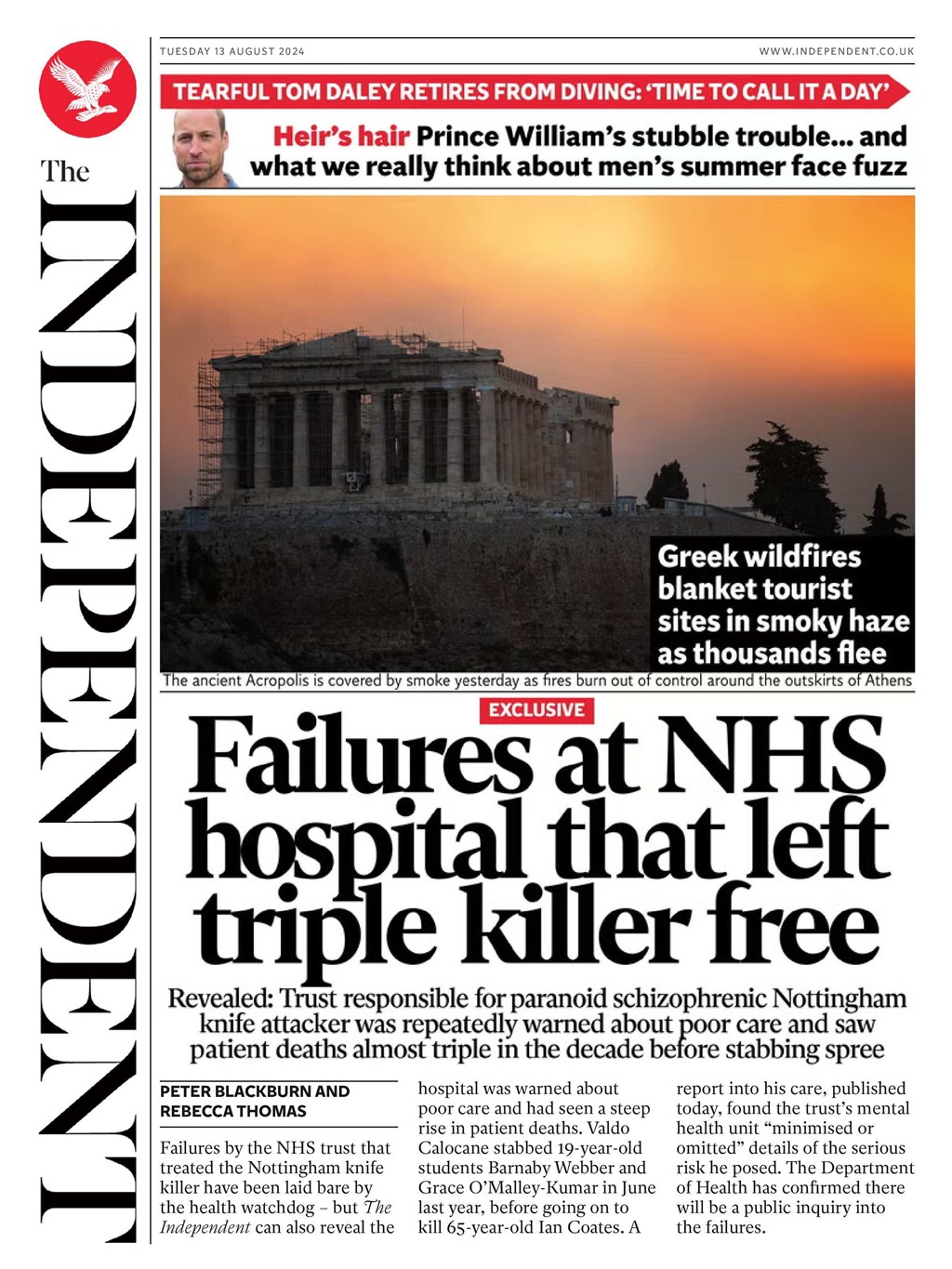 The Independent reports that the NHS trust responsible for treating the Nottingham knife killer had been repeatedly cautioned about substandard care.