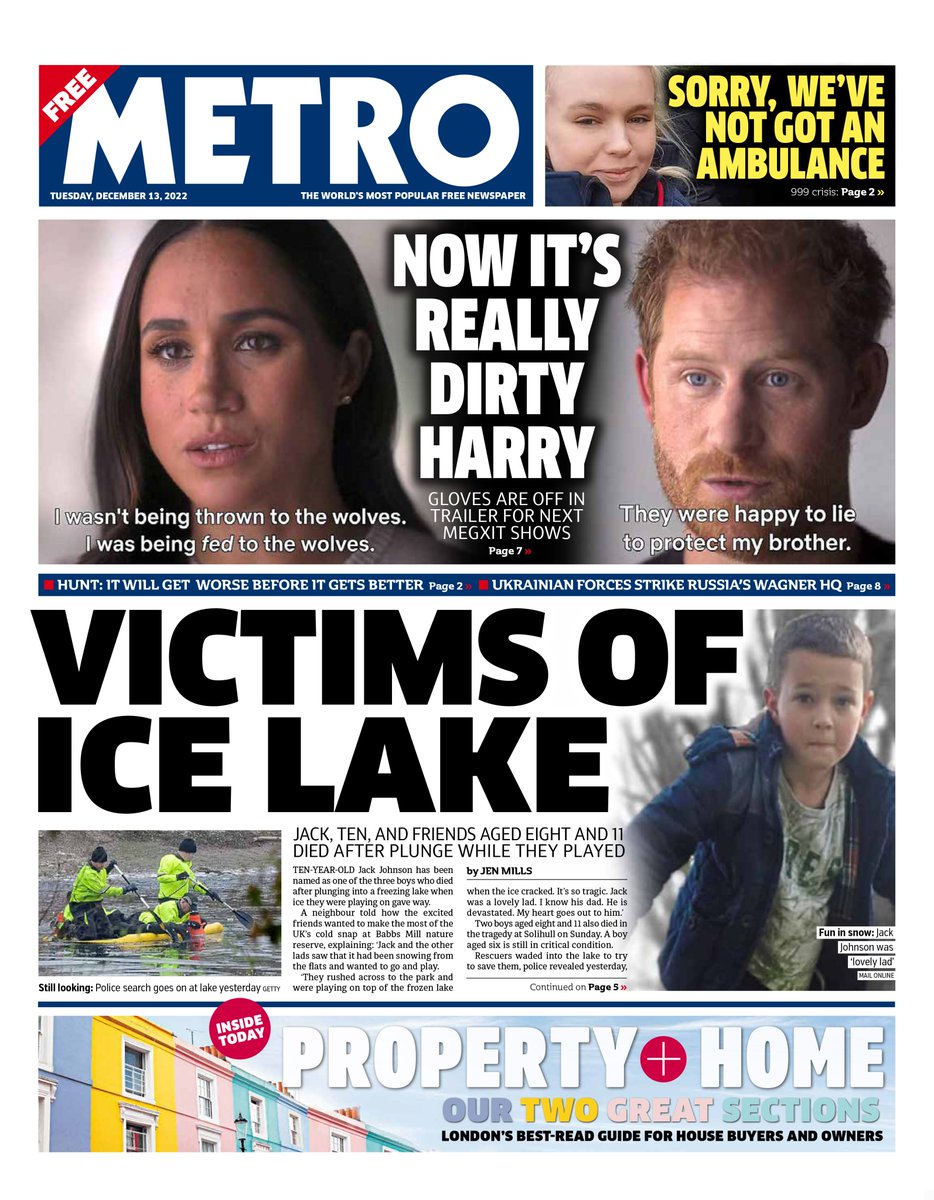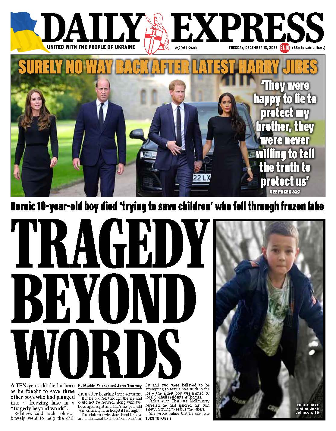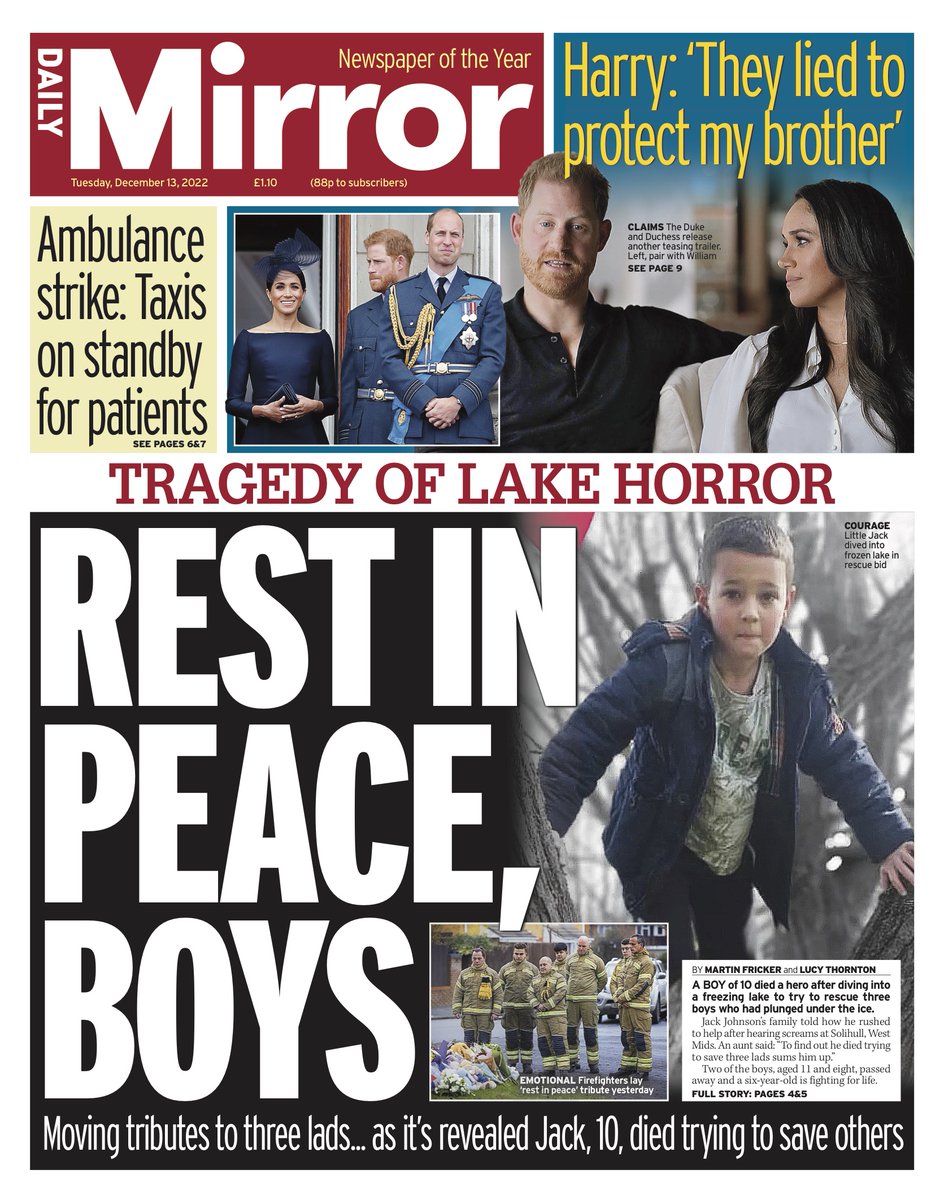 The Mirror reports on the heroic boy who tried to rescue his friends from the frozen lake.