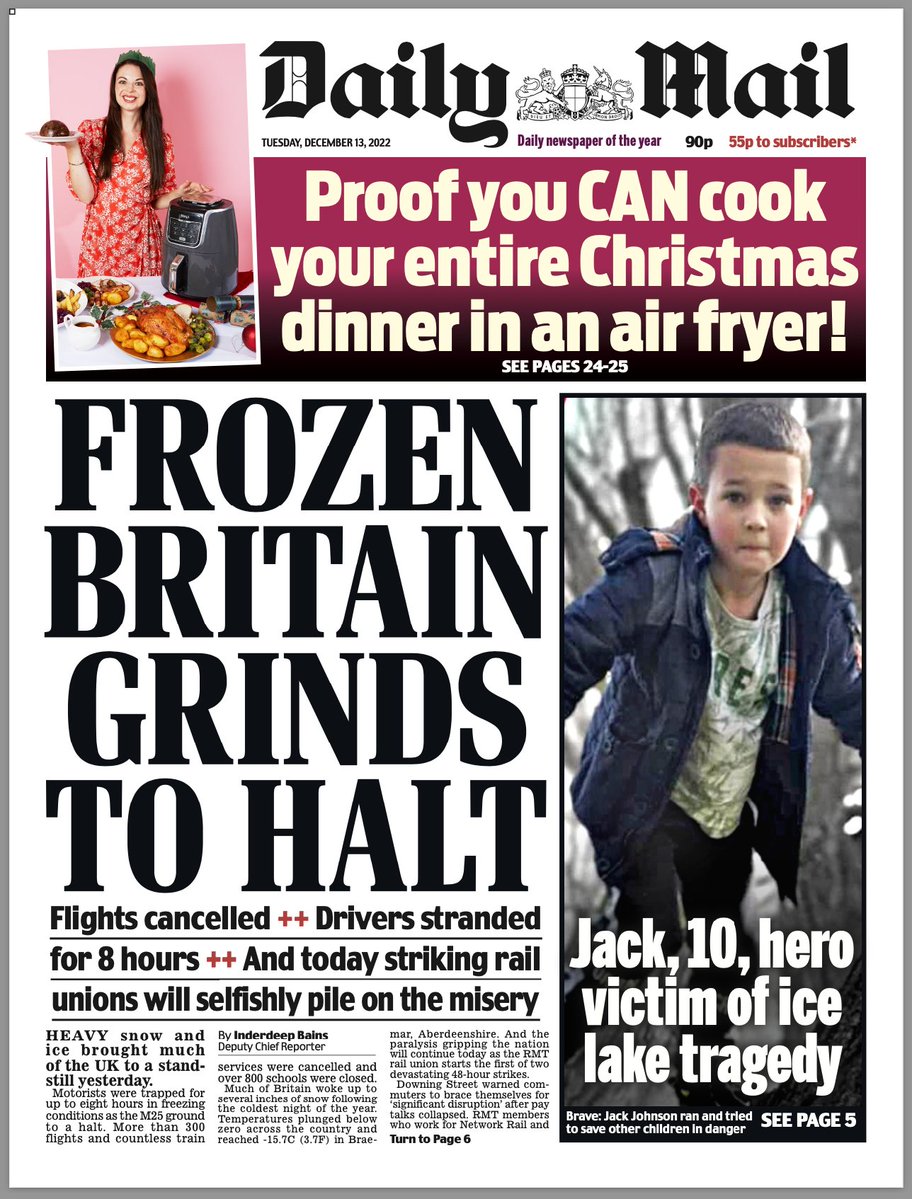 According to the Daily Mail, Britain has “ground to a halt” because of snow and ice.