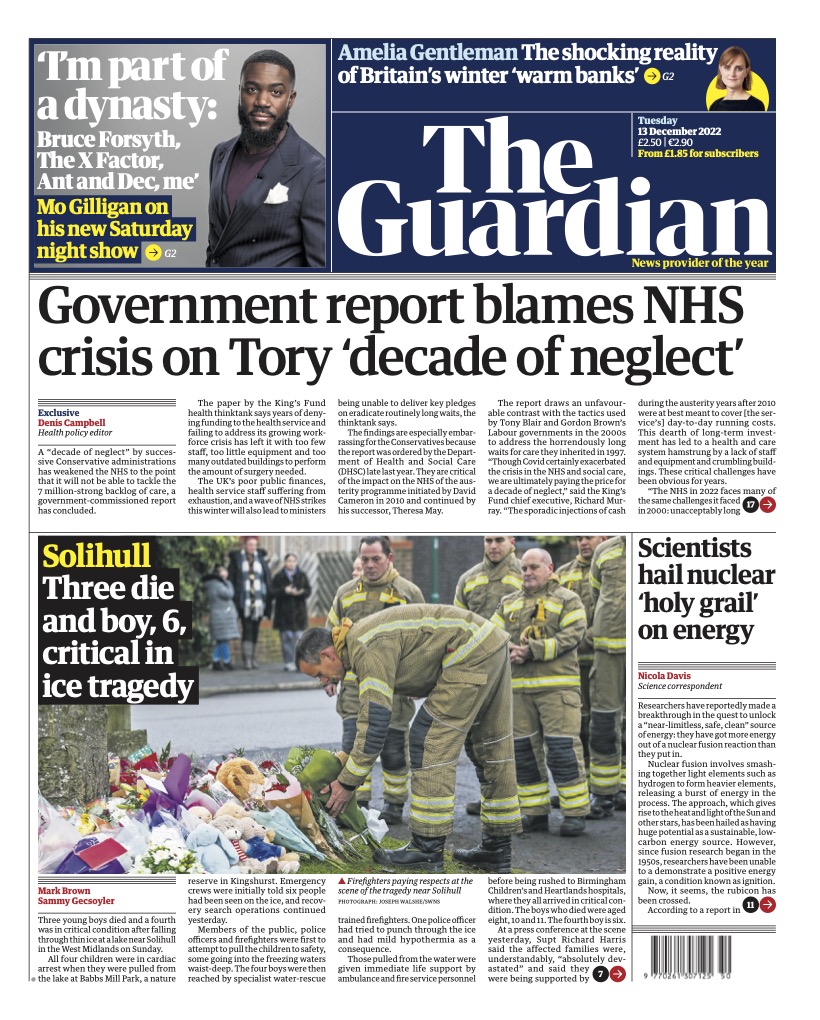 Recent declines in the NHS have been attributed to a “decade of neglect” by successive Conservative governments, according to a report featured in the Guardian.