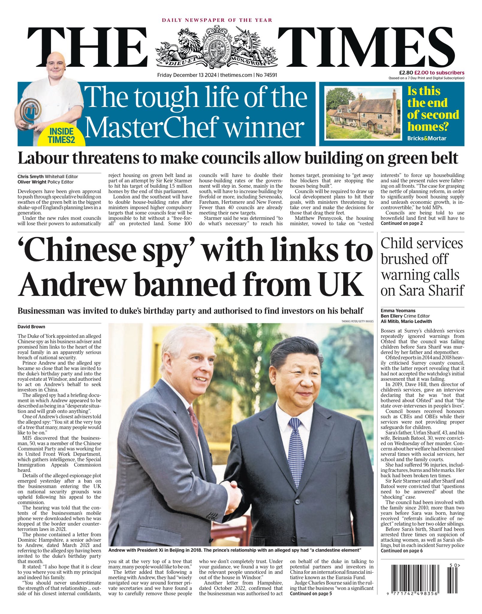 A close associate of Prince Andrew has been barred from entering the UK following an MI5 investigation over concerns of espionage, raising questions about security and diplomatic relations.