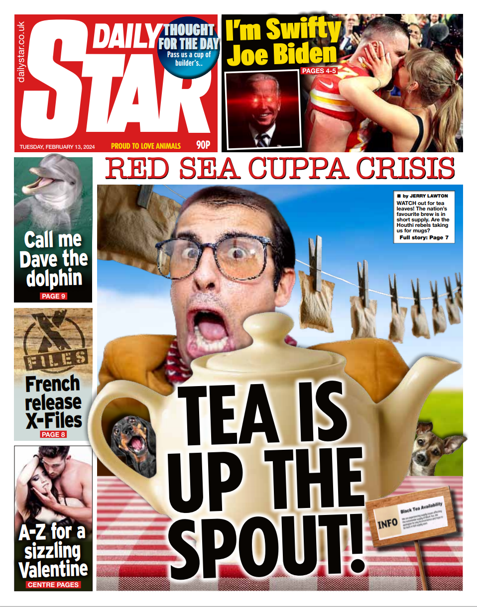 The Daily Star reports a potential threat to the UK’s tea supply due to the Houthi crisis in the Red Sea.
