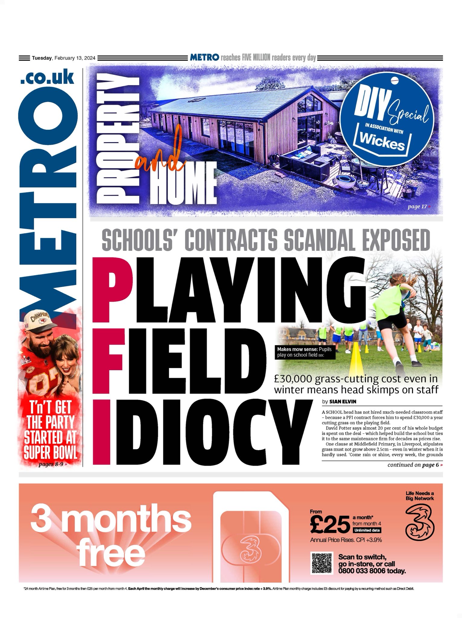 The Metro covers a headmaster’s hiring woes due to a costly PFI contract.