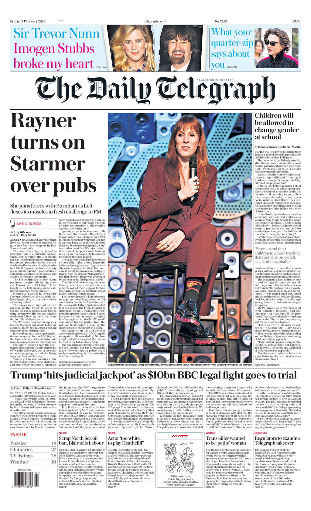 Daily Star Front Page 13th of February 2026