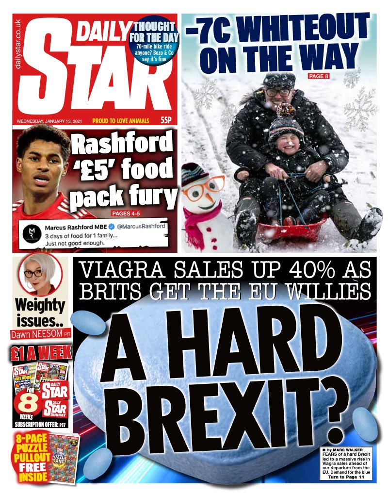 The Star says fears of a hard Brexit led to a 40% increase in Viagra sales before the UK left the EU for good at the end of last year.