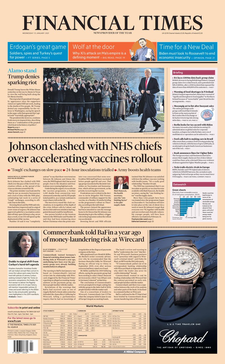 The prime minister has had some “tough exchanges” with NHS chiefs amid clashes over the speed of the vaccine rollout, the Financial Times reports.