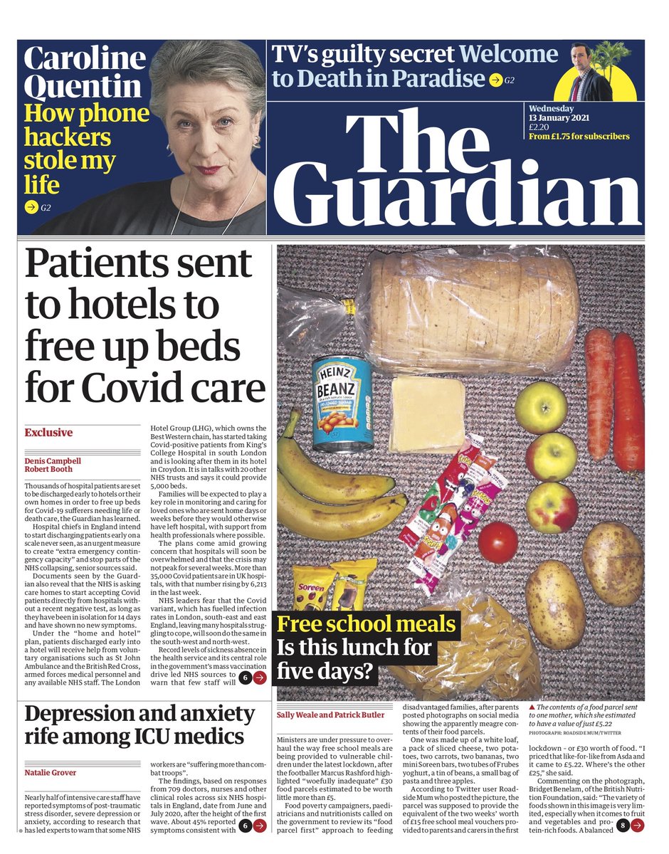 Thousands of hospital patients are set to be sent to hotels to free up beds for coronavirus cases, tomorrow’s The Guardian reports.