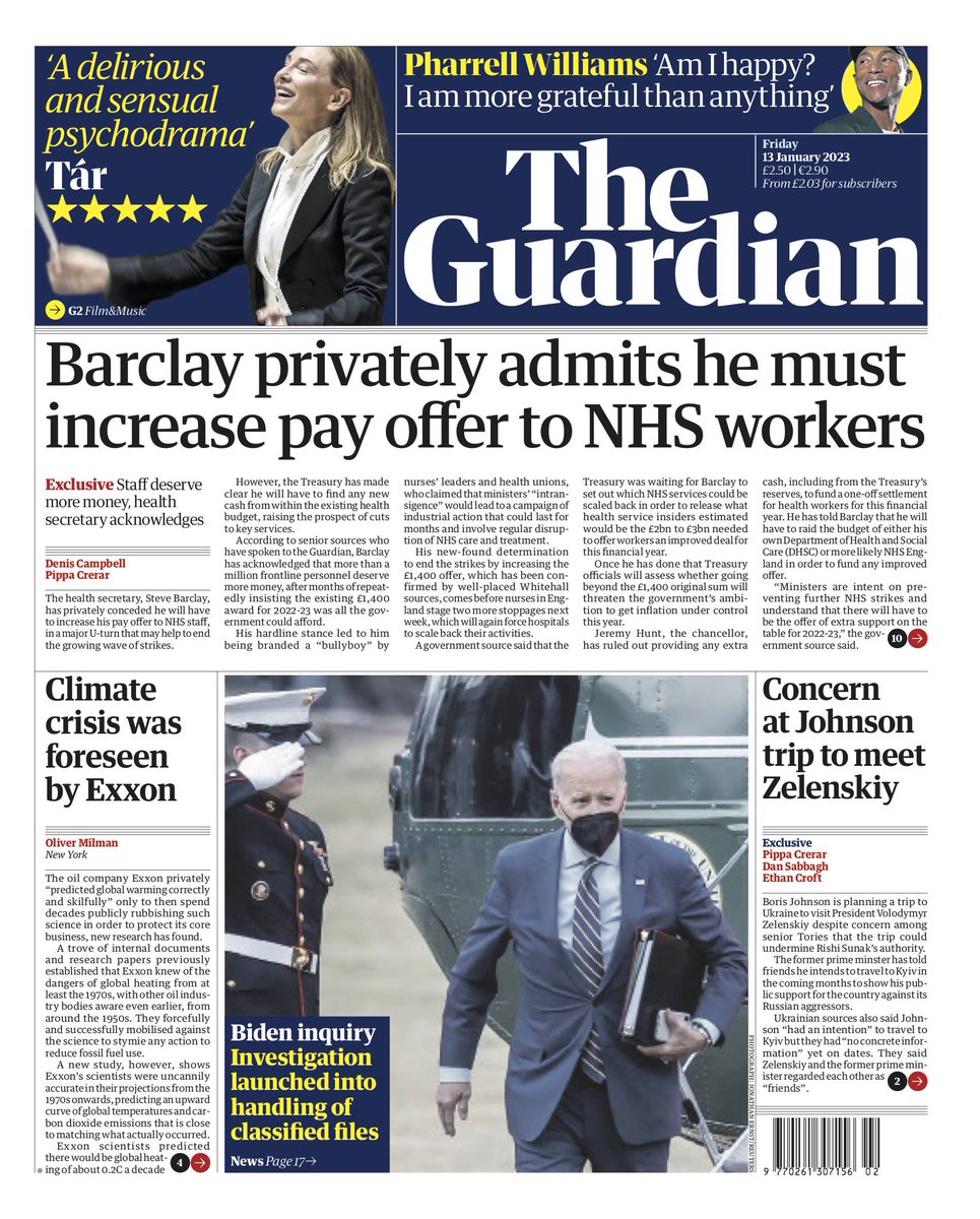 Steve Barclay has privately admitted that he will have to raise pay offers for NHS employees, reports The Guardian.