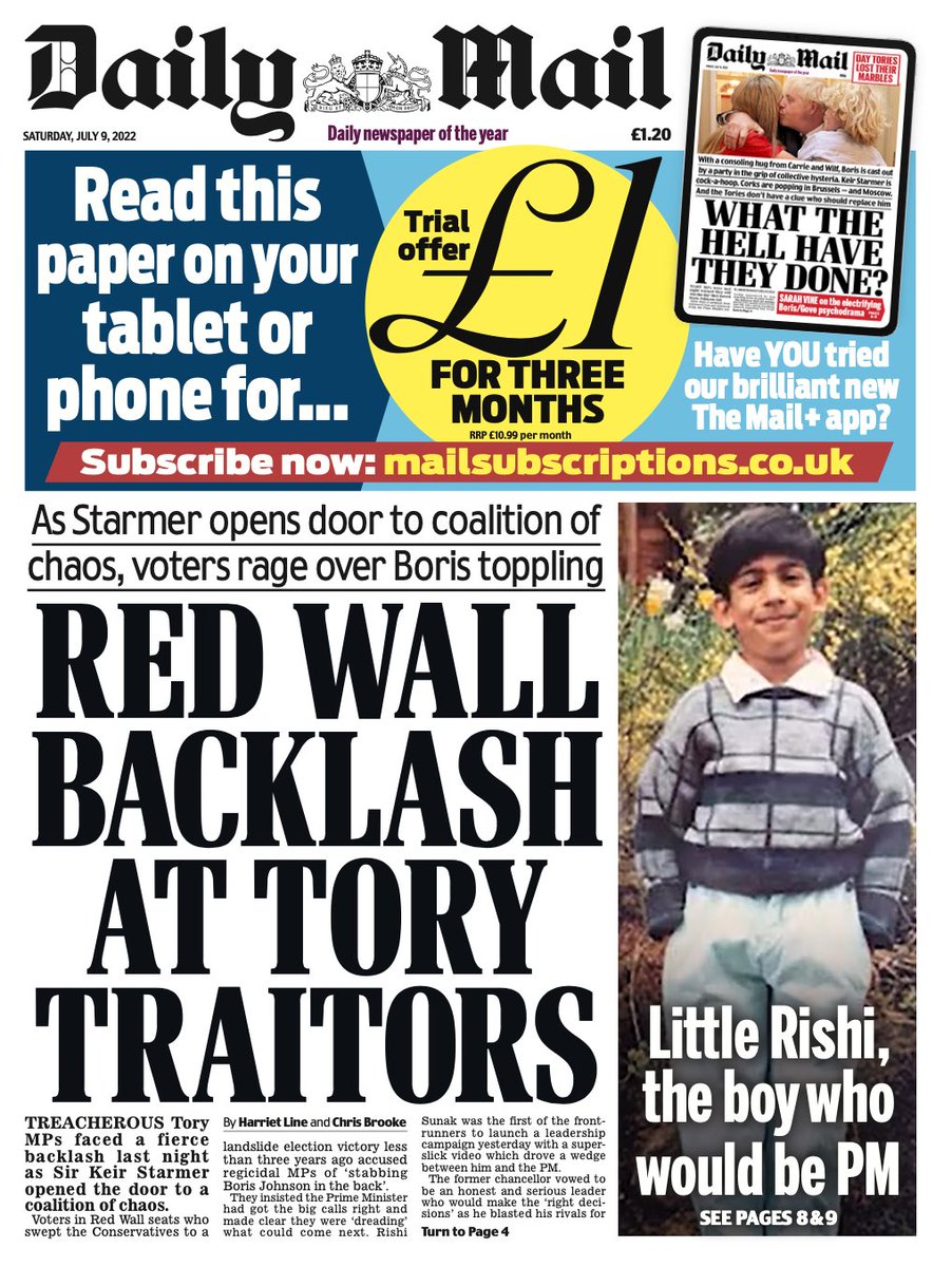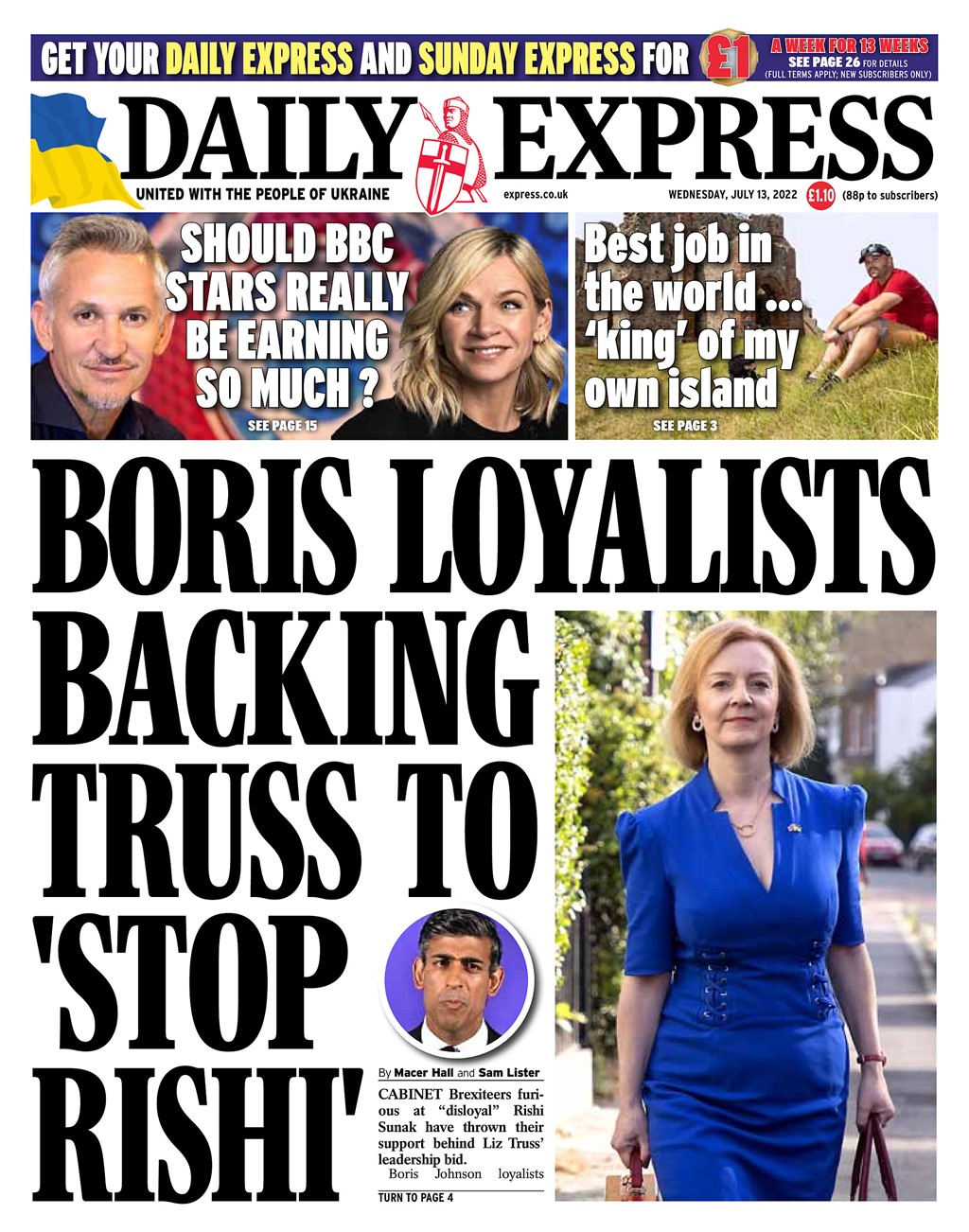 Daily Express reports that cabinet members loyal to Boris Johnson are supporting Foreign Secretary Liz Truss in her efforts to prevent “disloyal” Rishi Sunak from becoming Tory leader.