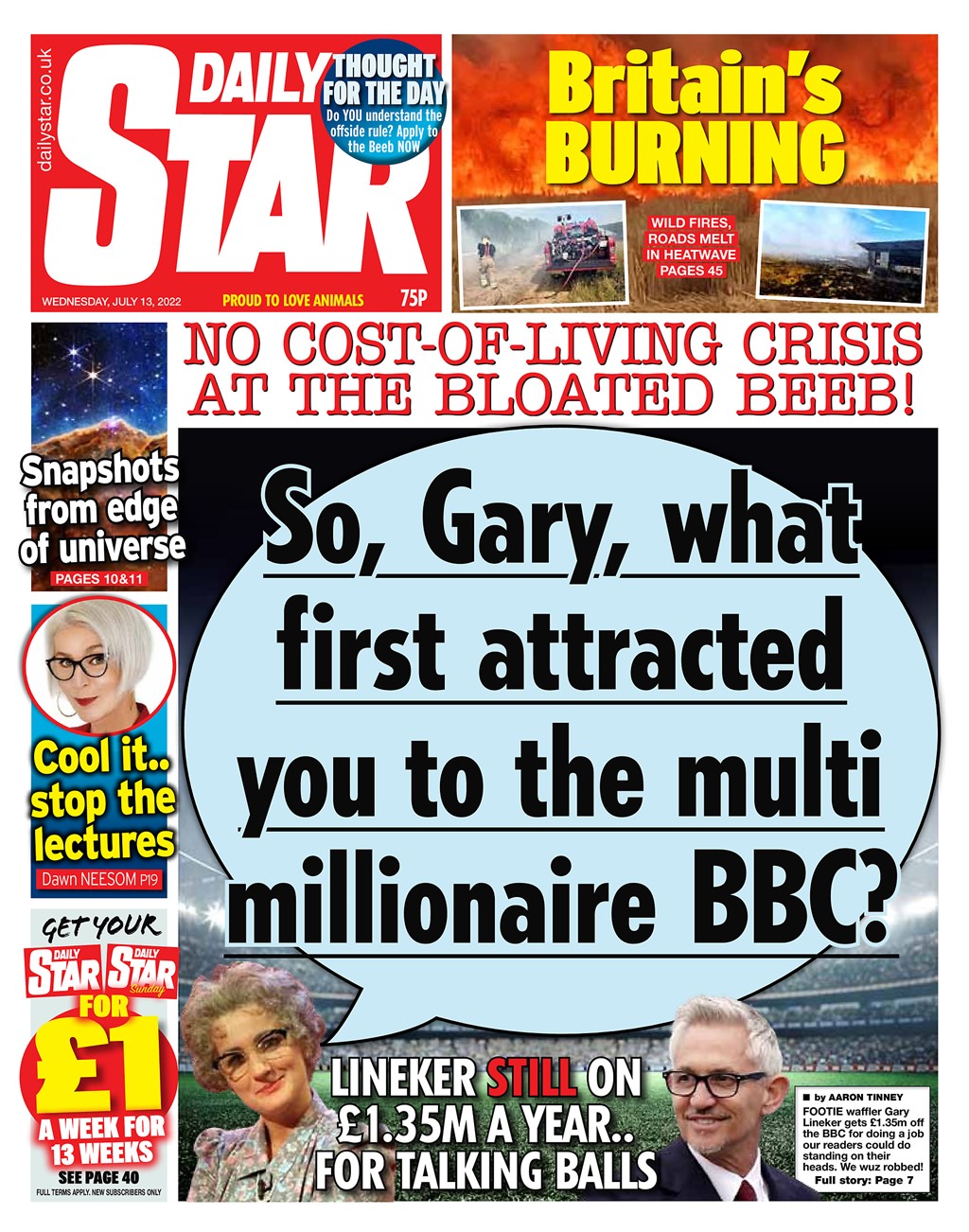 Gary Lineker has again been named the BBC’s top earner, according to the Star.