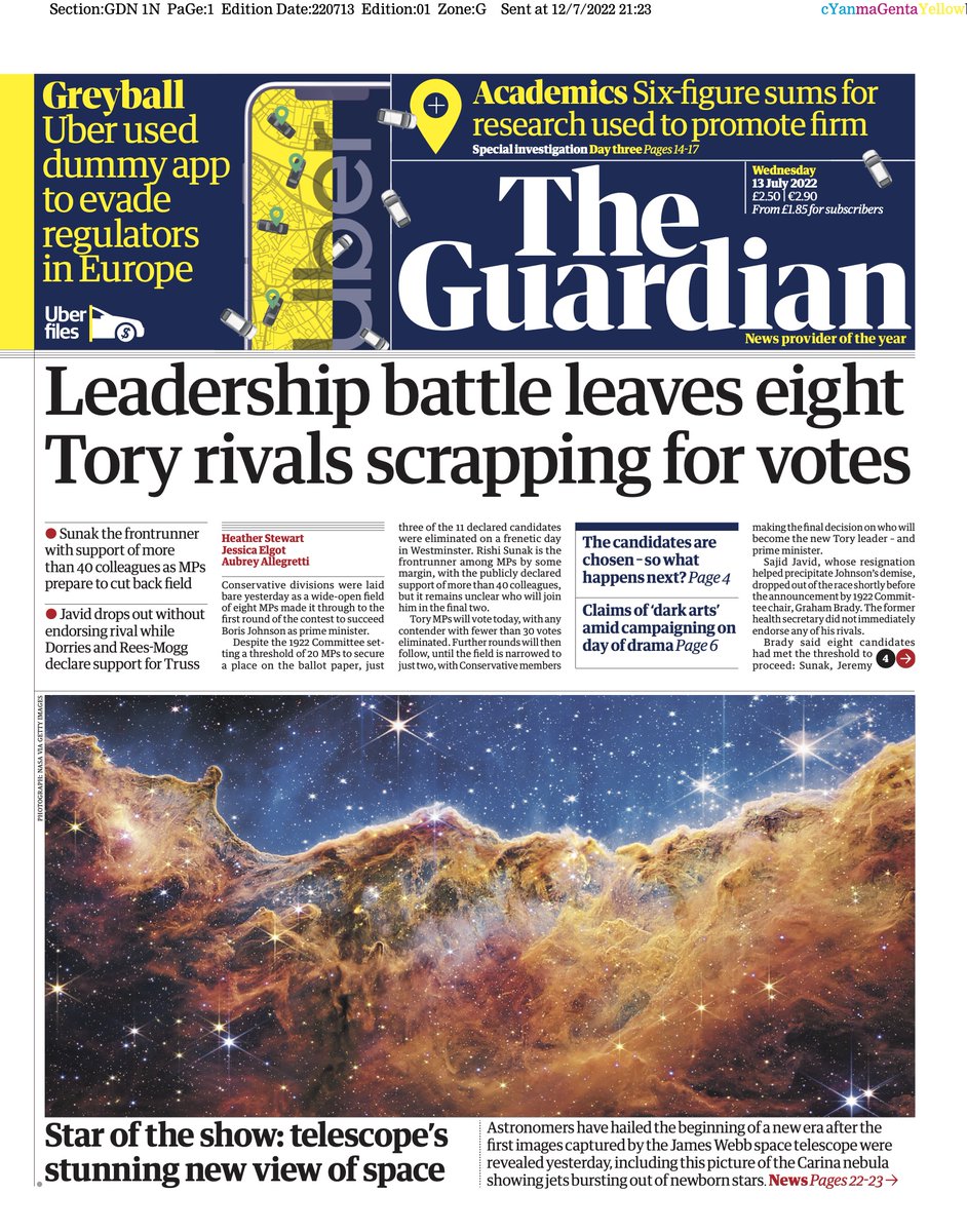 On the front of the i, the eight candidates competing for the role of prime minister are pictured, as Rishi Sunak, Penny Mordaunt and Liz Truss have had an “early boost”.