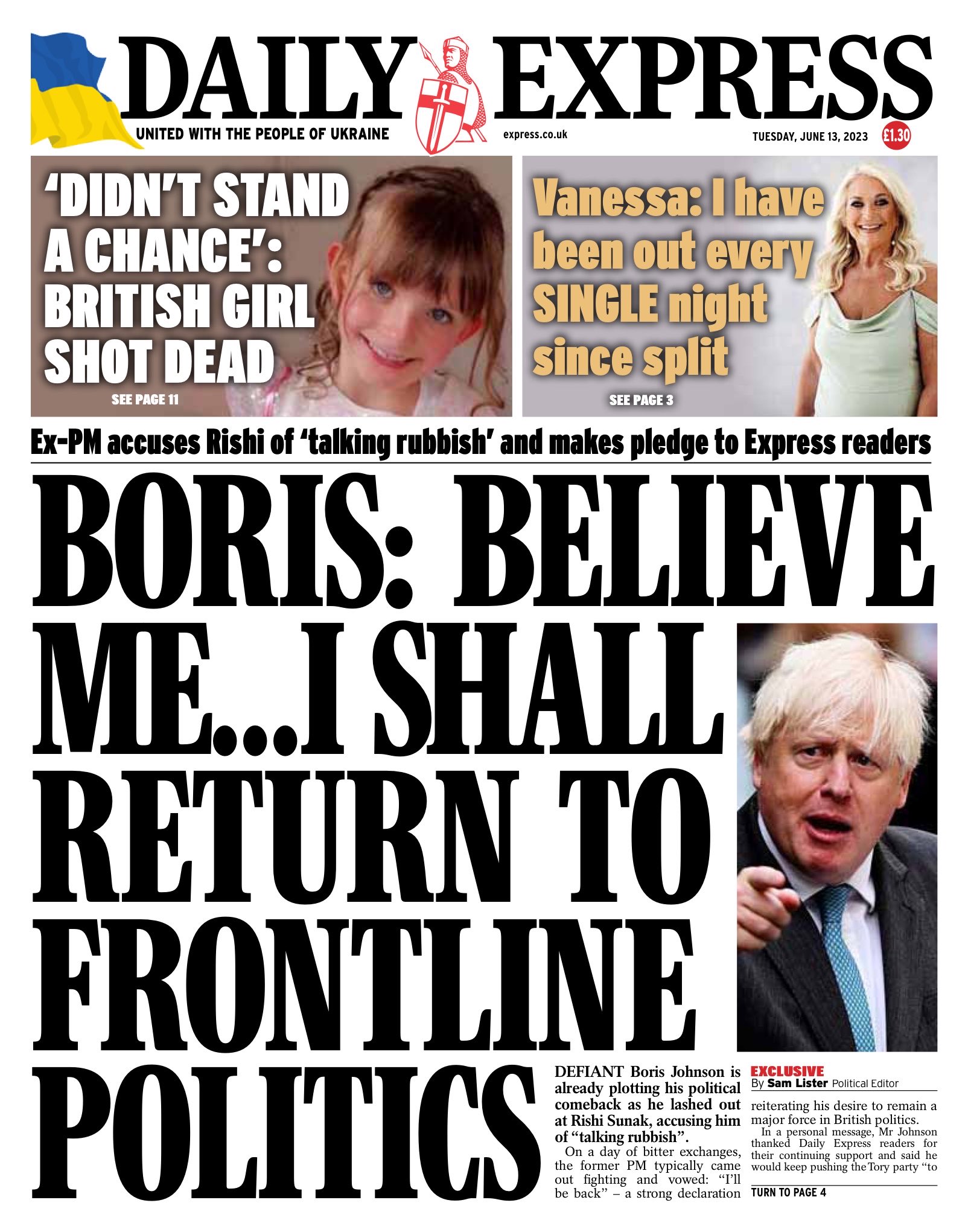 The Daily Express discusses Boris Johnson’s planned political return, in which he reportedly accuses Rishi Sunak of speaking nonsense.