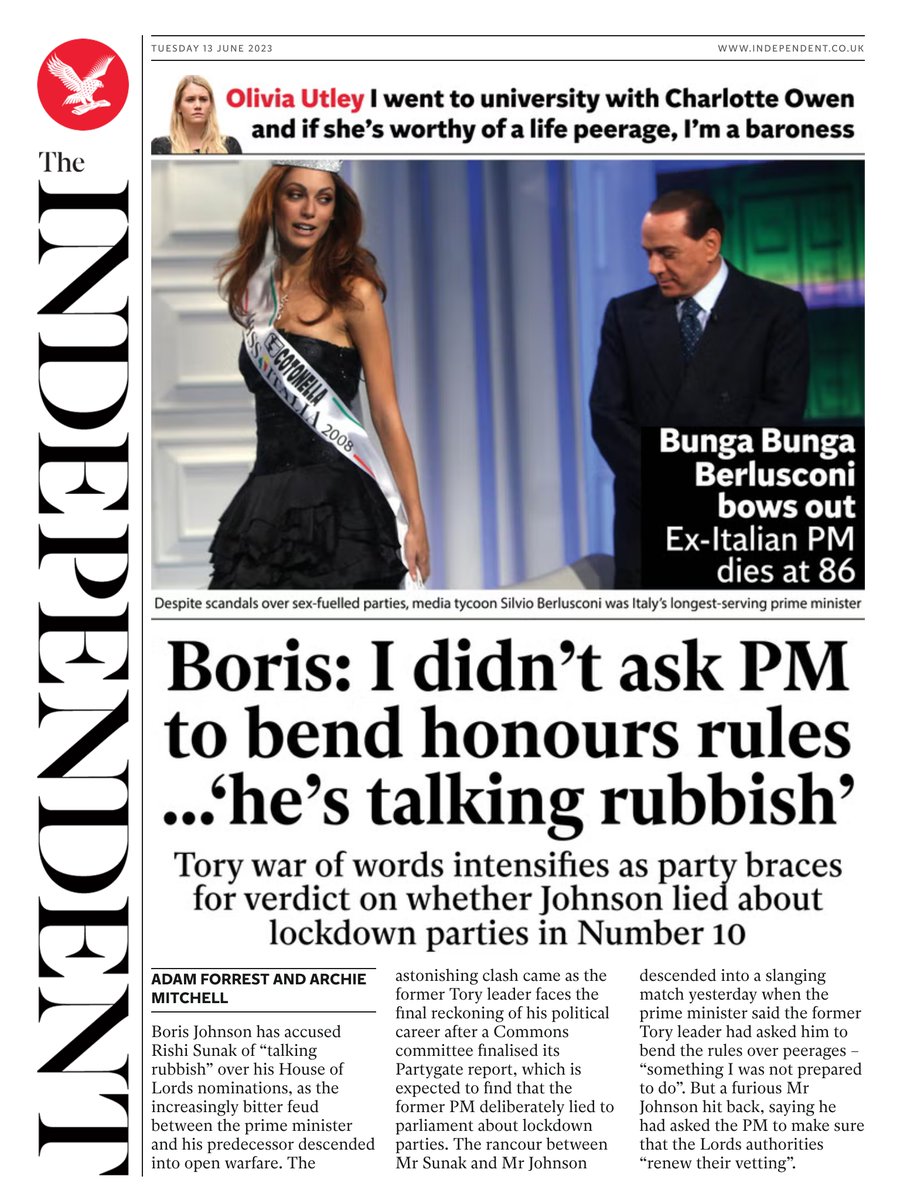 Daily Telegraph Front Page 13th of June 2023