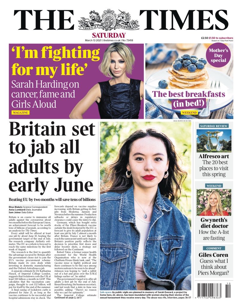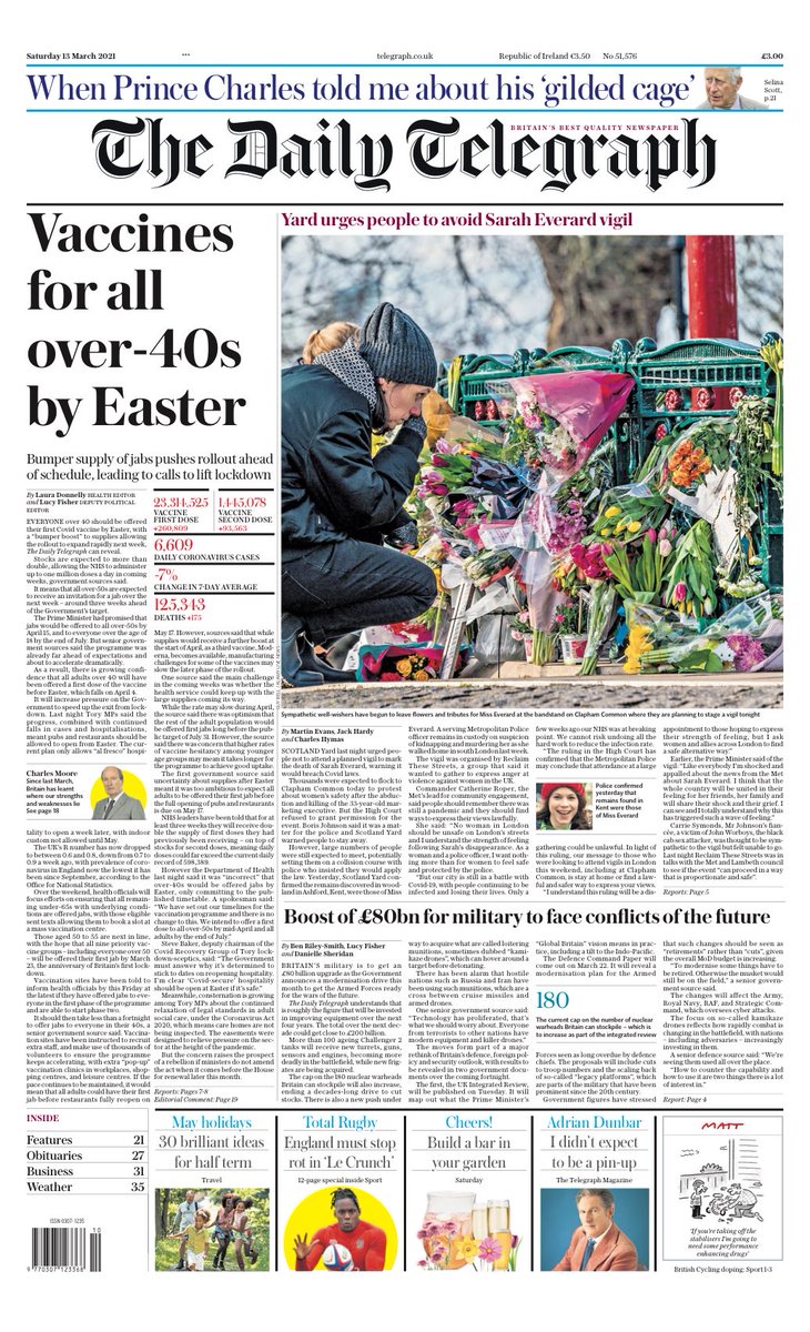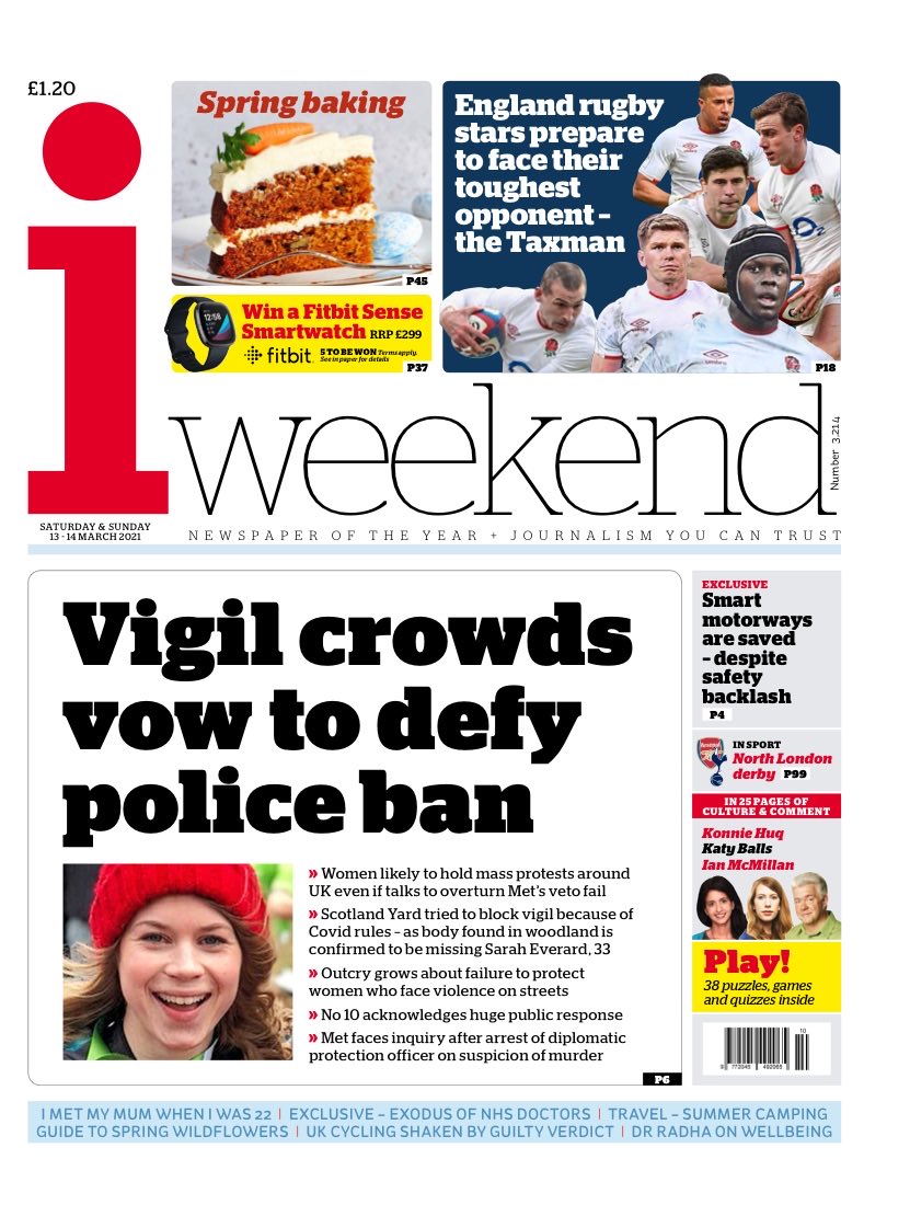 The i leads on Reclaim These Streets protesters vowing to gather near where Sarah Everard disappeared despite the High Court ruling it would be illegal under COVID rules.Read the full story here.