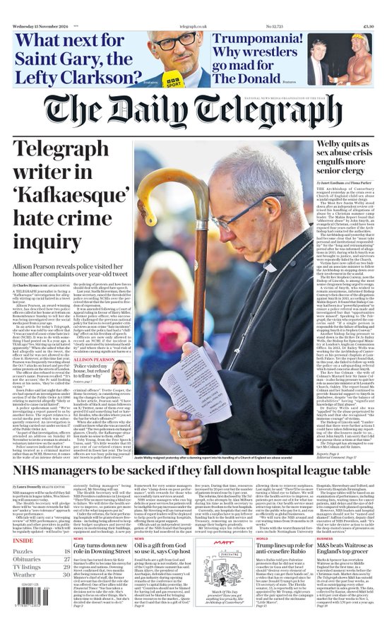 Allison Pearson, a writer, has revealed that the police visited her home following complaints about a year-old tweet, which she describes as a confusing experience.