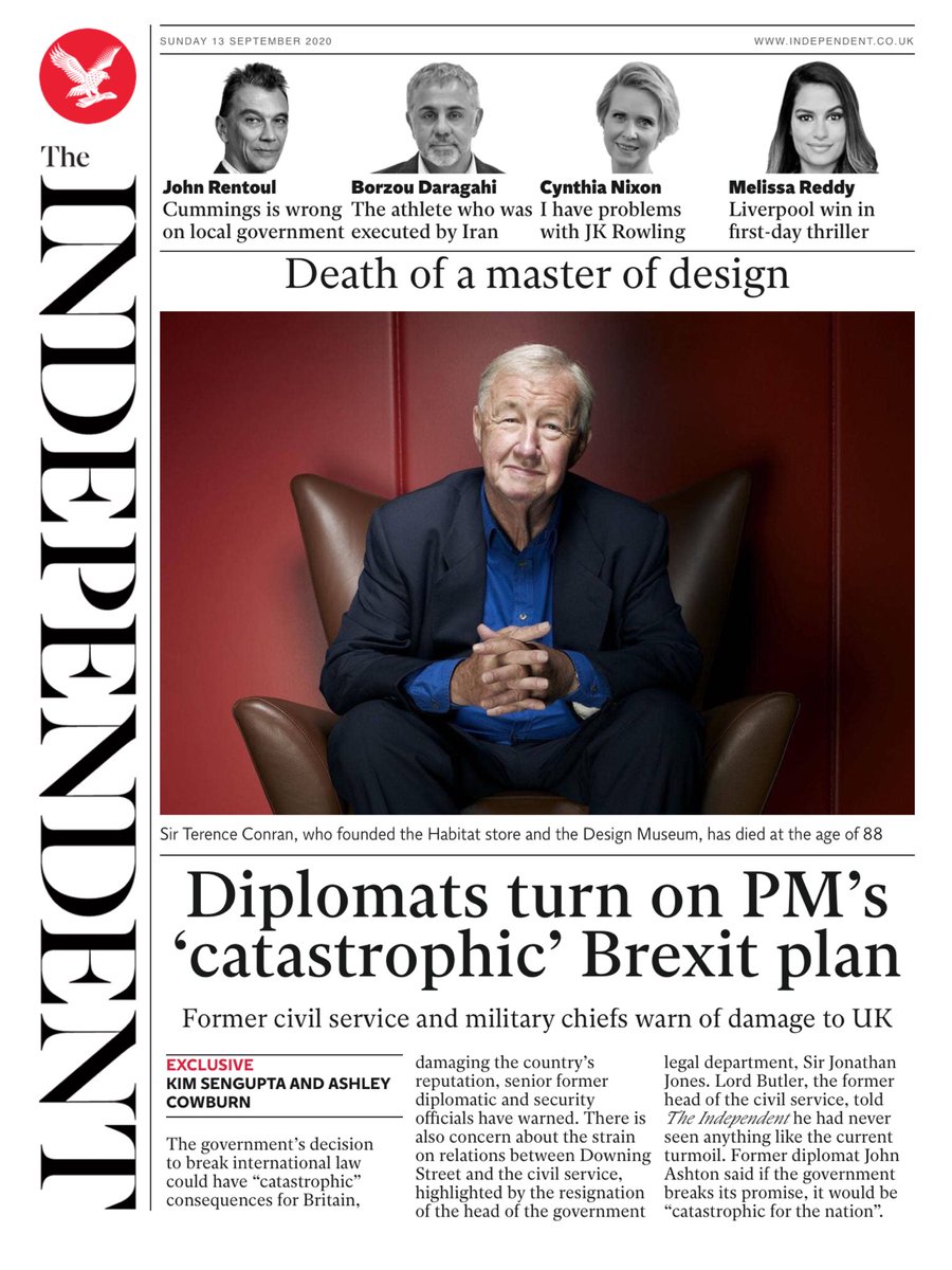Some of the UK’s top lawyers have accused the attorney general Suella Braverman of sacrificing the UK’s reputation, side-lining legal advisers and bypassing the ministerial code after the government unveiled plans to breach part of the Brexit Withdrawal Agreement, The Observer says. Five QCs confronted the attorney general during the annual general meeting of the Bar Council on Saturday. Also on the front page is a photo and tribute to designer Sir Terence Conran, who has died at the age of 88.