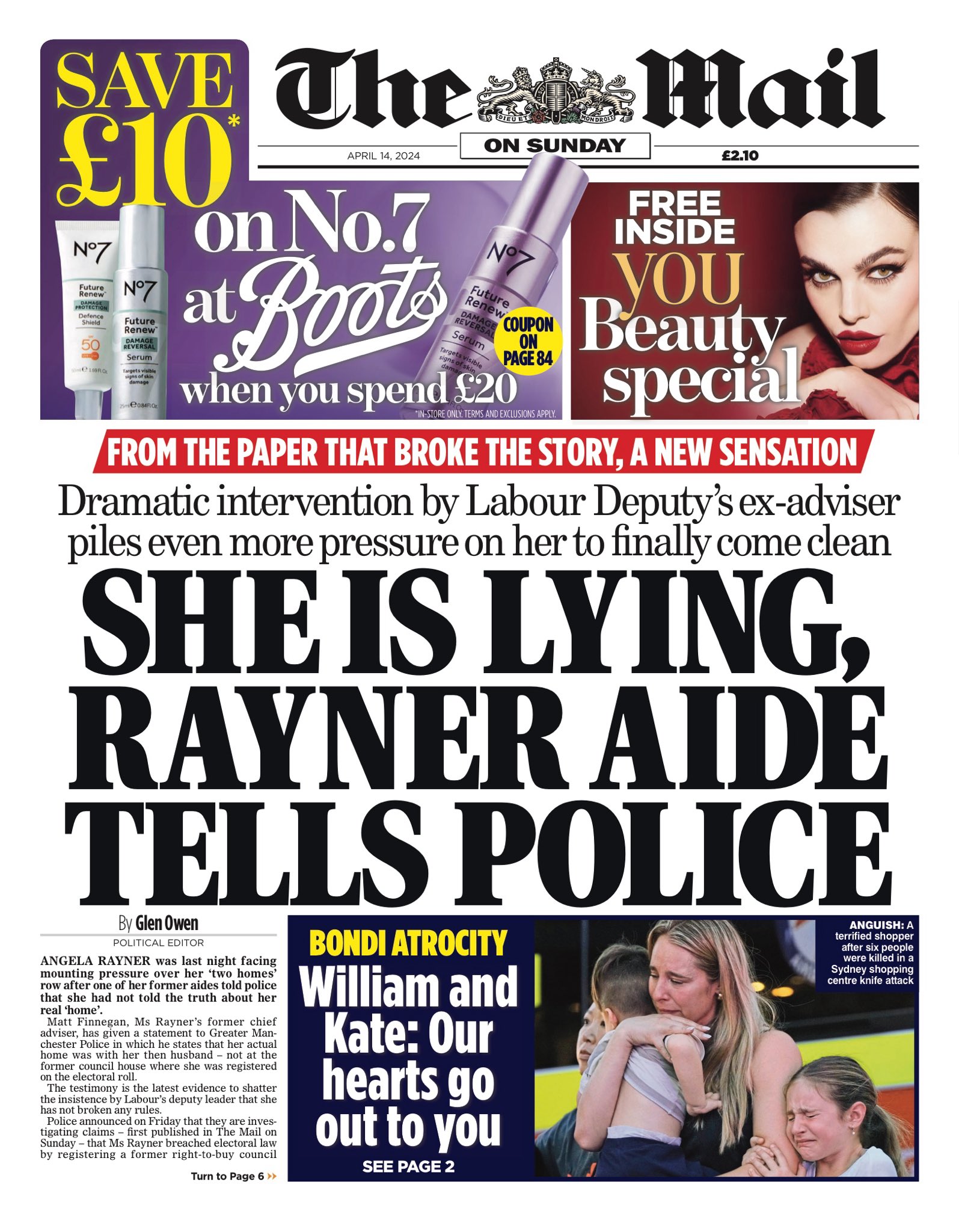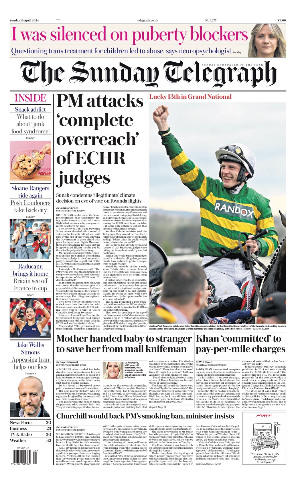 The Sunday Times highlights Business Secretary Kemi Badenoch’s demand for a review on gender policies across public bodies.