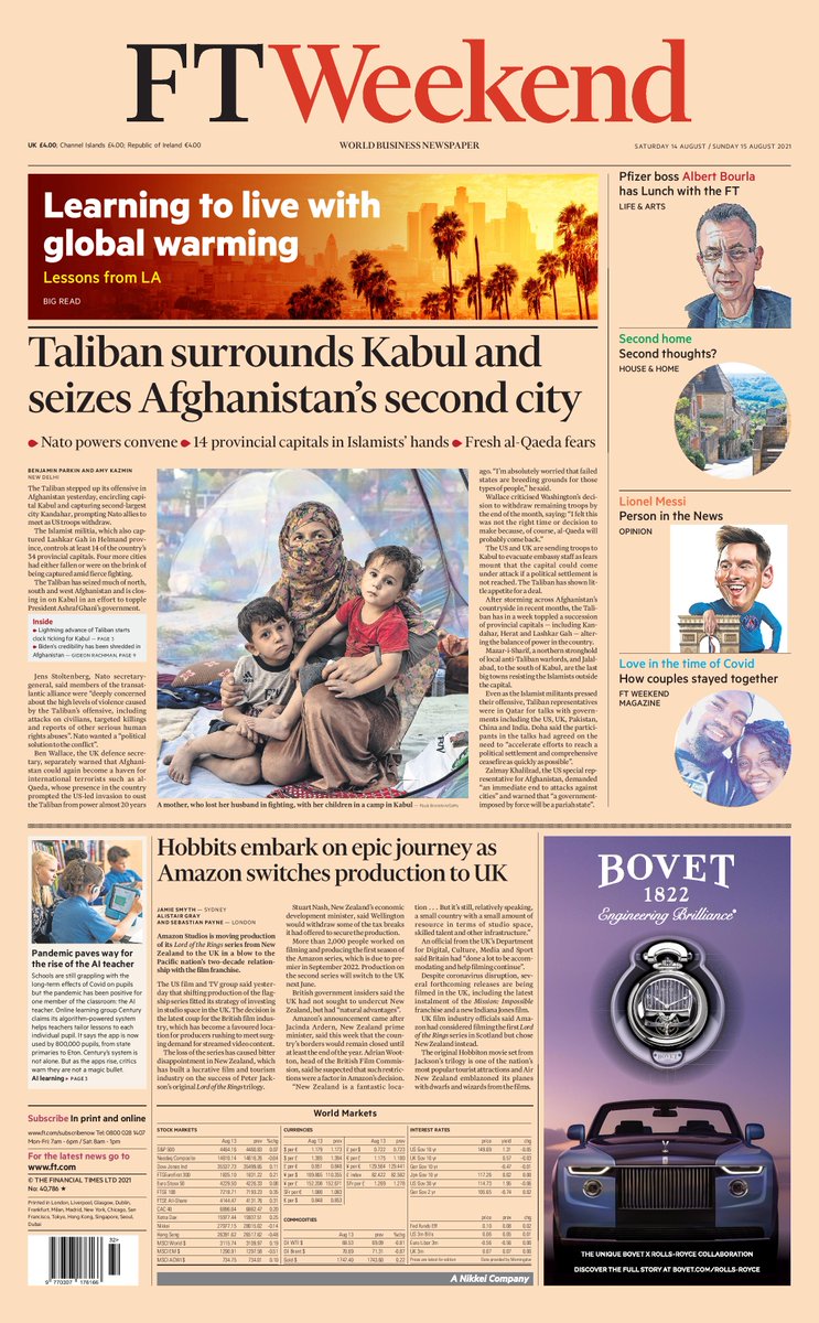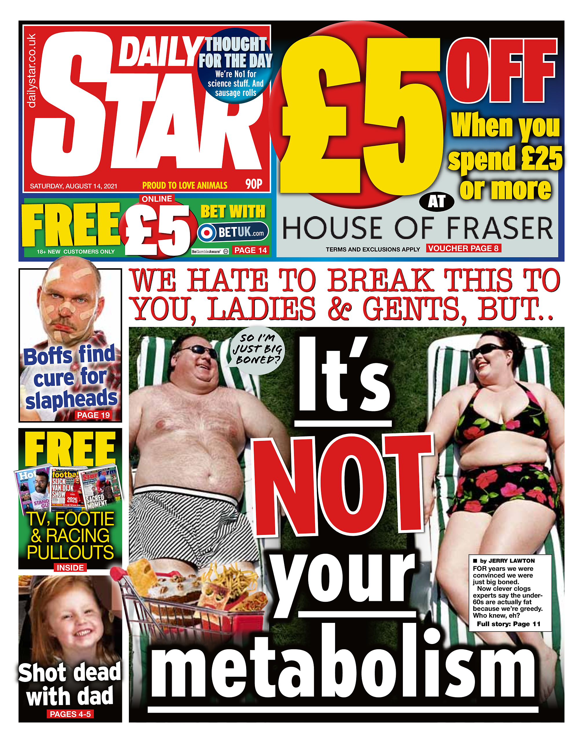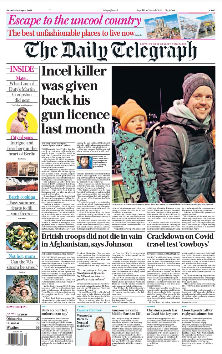 Daily Mirror Front Page 14th of August 2021
