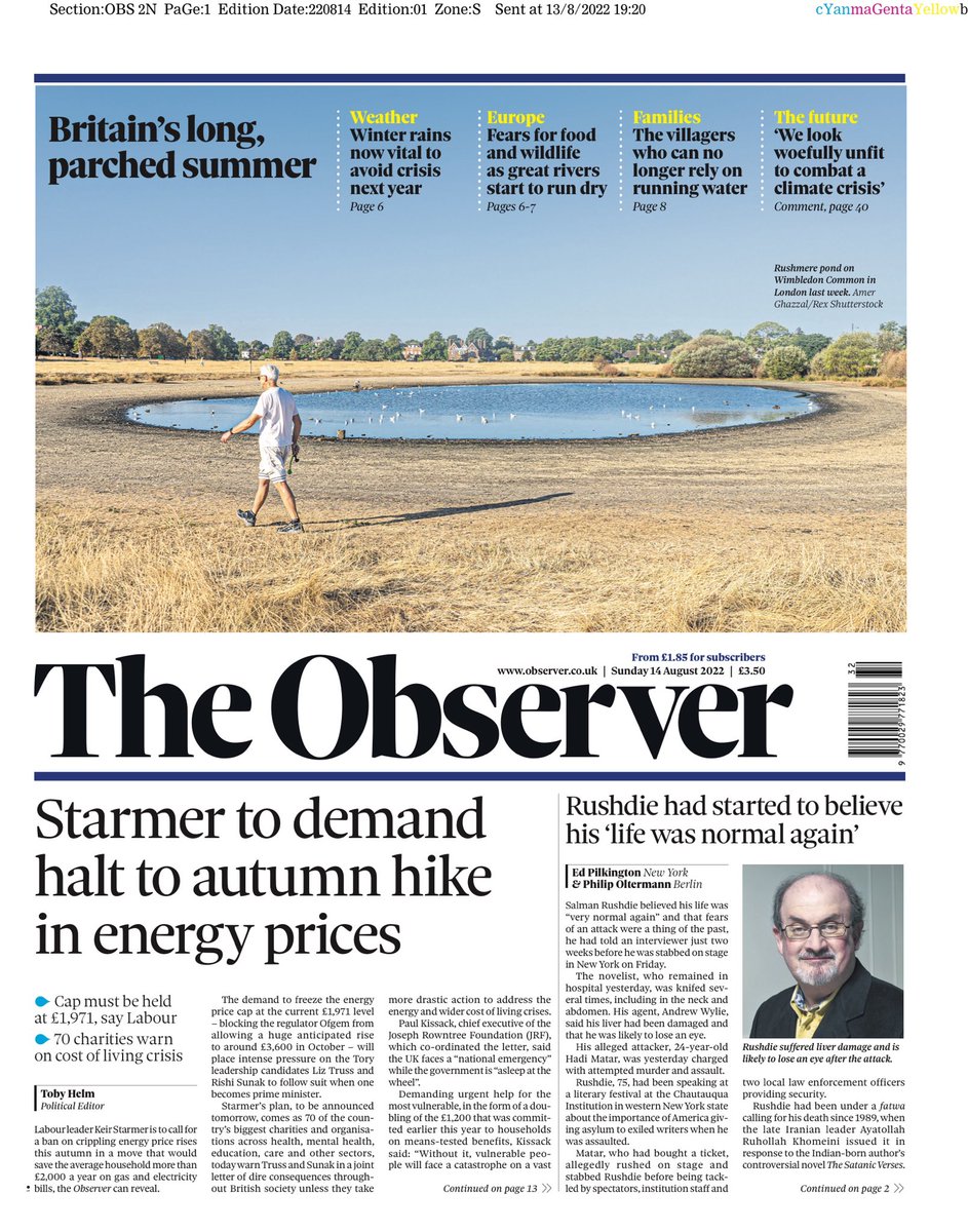 The Observer reports that Labour leader Sir Keir Starmer plans to call for a ban on energy price increases this autumn.