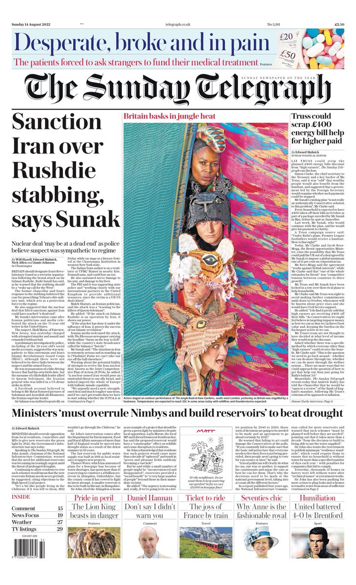 As a result of the brutal attack on Sir Salman Rushdie, Rishi Sunak has called for Iran’s Revolutionary Guard to be officially designated as a terrorist organization, reports the Telegraph.