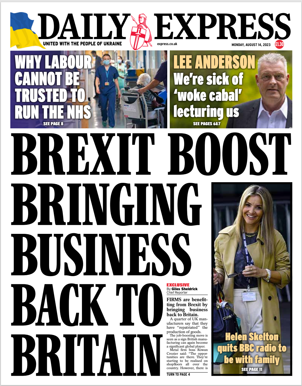 The Daily Express focuses on 25% of UK manufacturers reportedly “repatriating” production since Brexit, viewing it as beneficial for businesses.