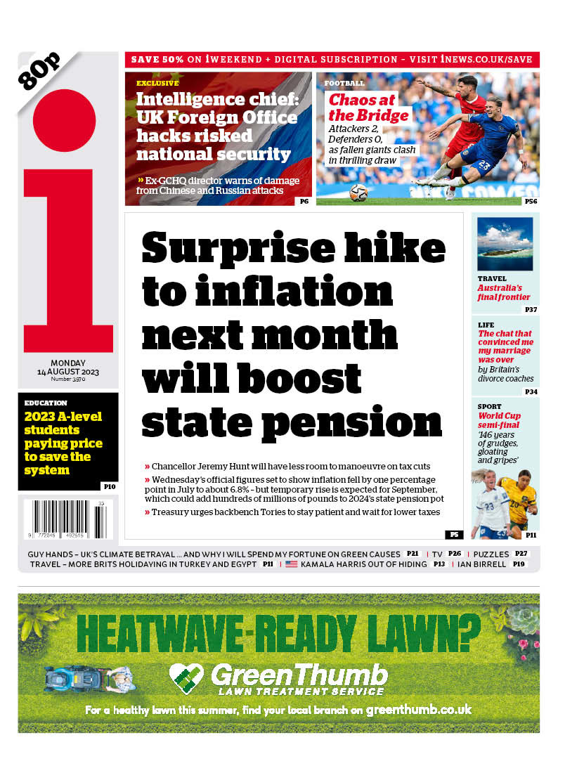 The i reports a “surprise” inflation rise expected next month that could add hundreds of millions to the state pension pot for 2024.