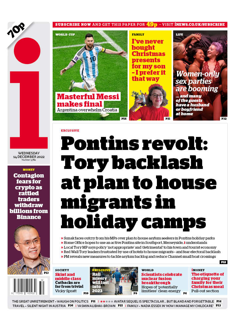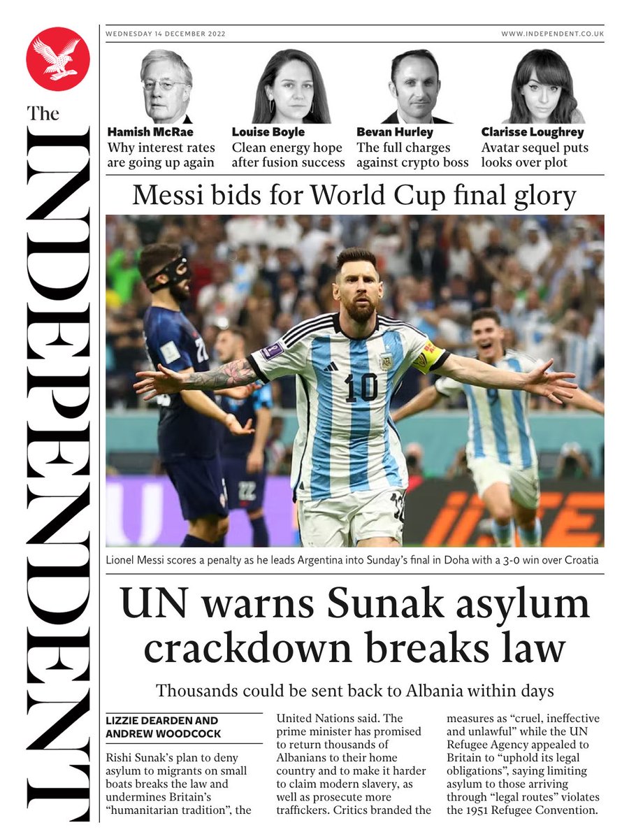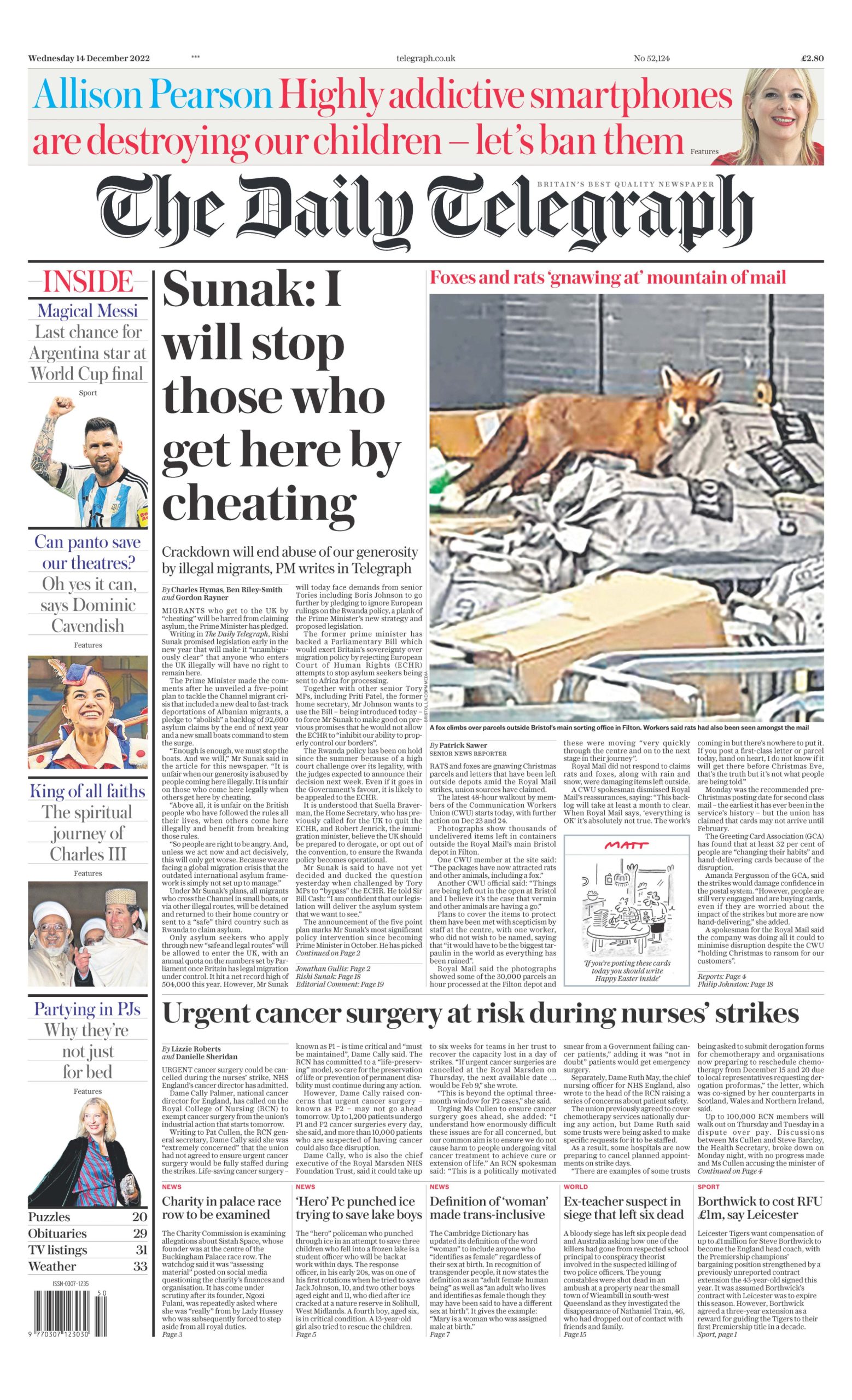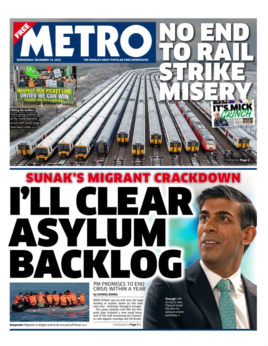 In the Metro, Rishi Sunak promises to pass new immigration laws..