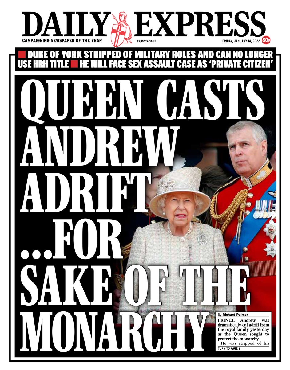 The Queen has “cast Andrew adrift for the sake of the monarchy”, reports the Daily Express.